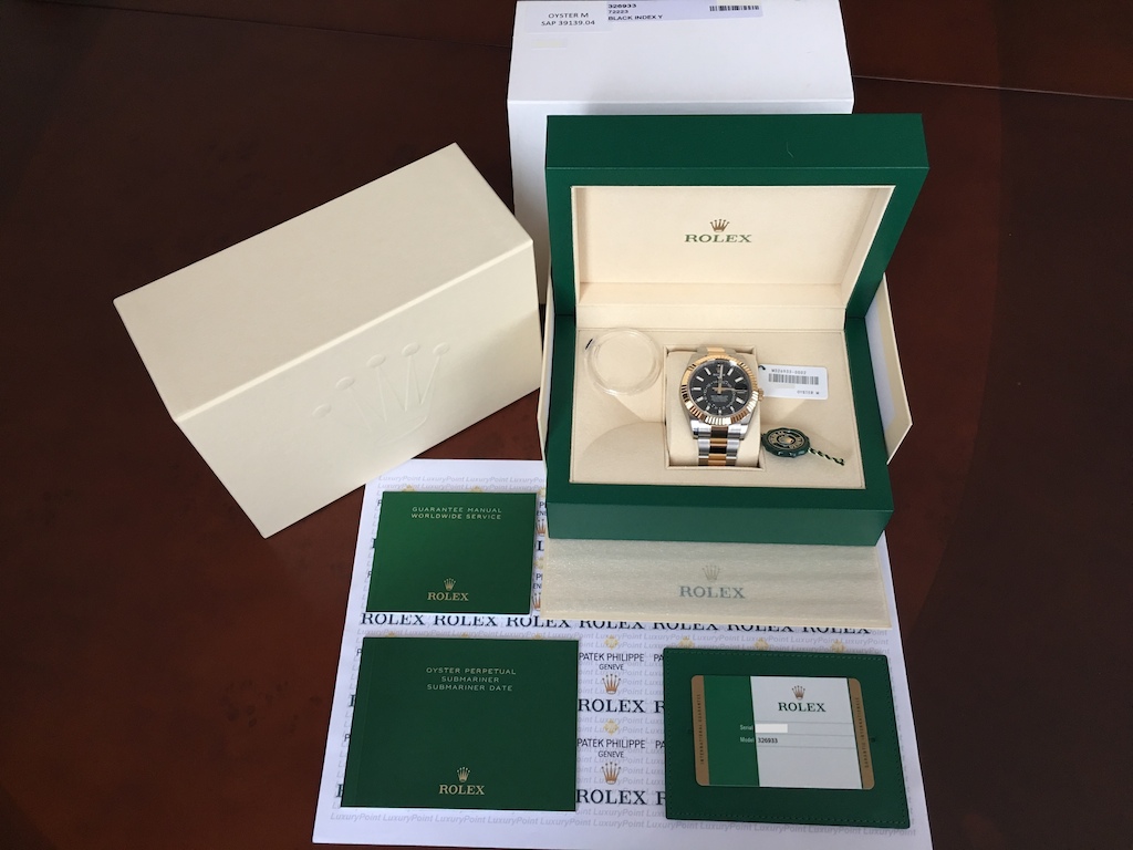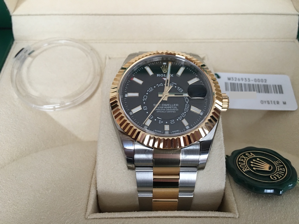 Вниманию уважаемого сообщества предлагается долгожданная новинка Baselworld 2017 – Rolex Sky-Dweller из стали и жёлтого золота с самым популярным циферблатом чёрного цвета с золотыми часовыми метками. В данный момент отсутствует в свободной продаже у официальных дилеров.