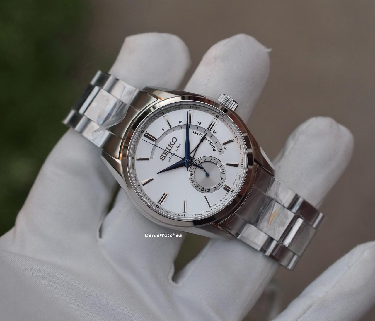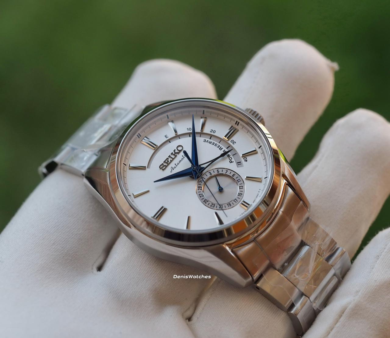 Светлый циферблат отлично сочетается с темно-синими лаковыми стрелками