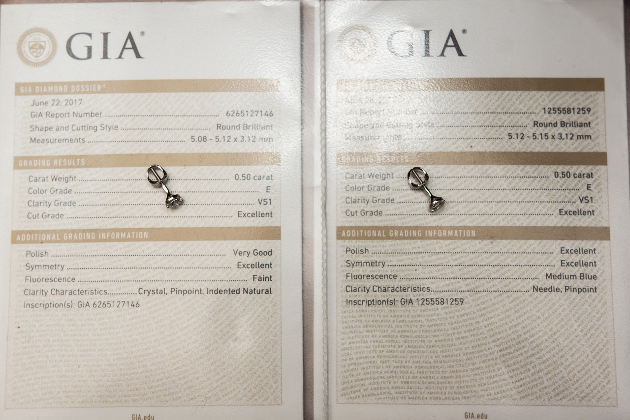 Серьги-пуссеты с бриллиантами по 0,50 карат (сертификаты GIA)!