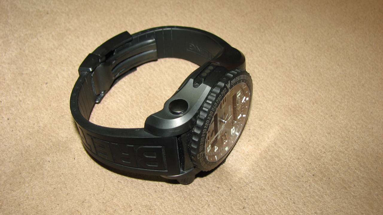 Корпус титановый. Устойчивость до 5 бар. Выпуклое сапфировое стекло, защита от бликов на обеих сторонах. Вращающийся в двух направлениях безель. Шкала компаса. Диаметр: 51 мм.
