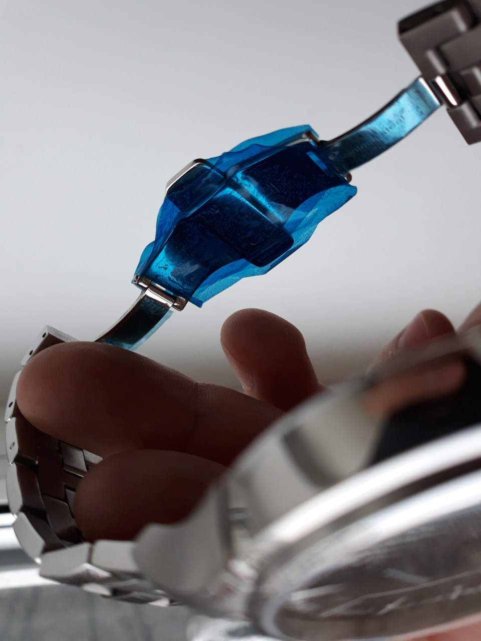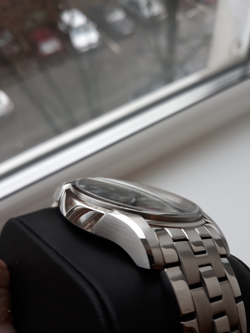 Циферблат очень красивый, читается легко. Накладные стальные метки - просто шикарны, добавляют ВАУ-эффекта часам, в темноте метки и стрелки светятся.