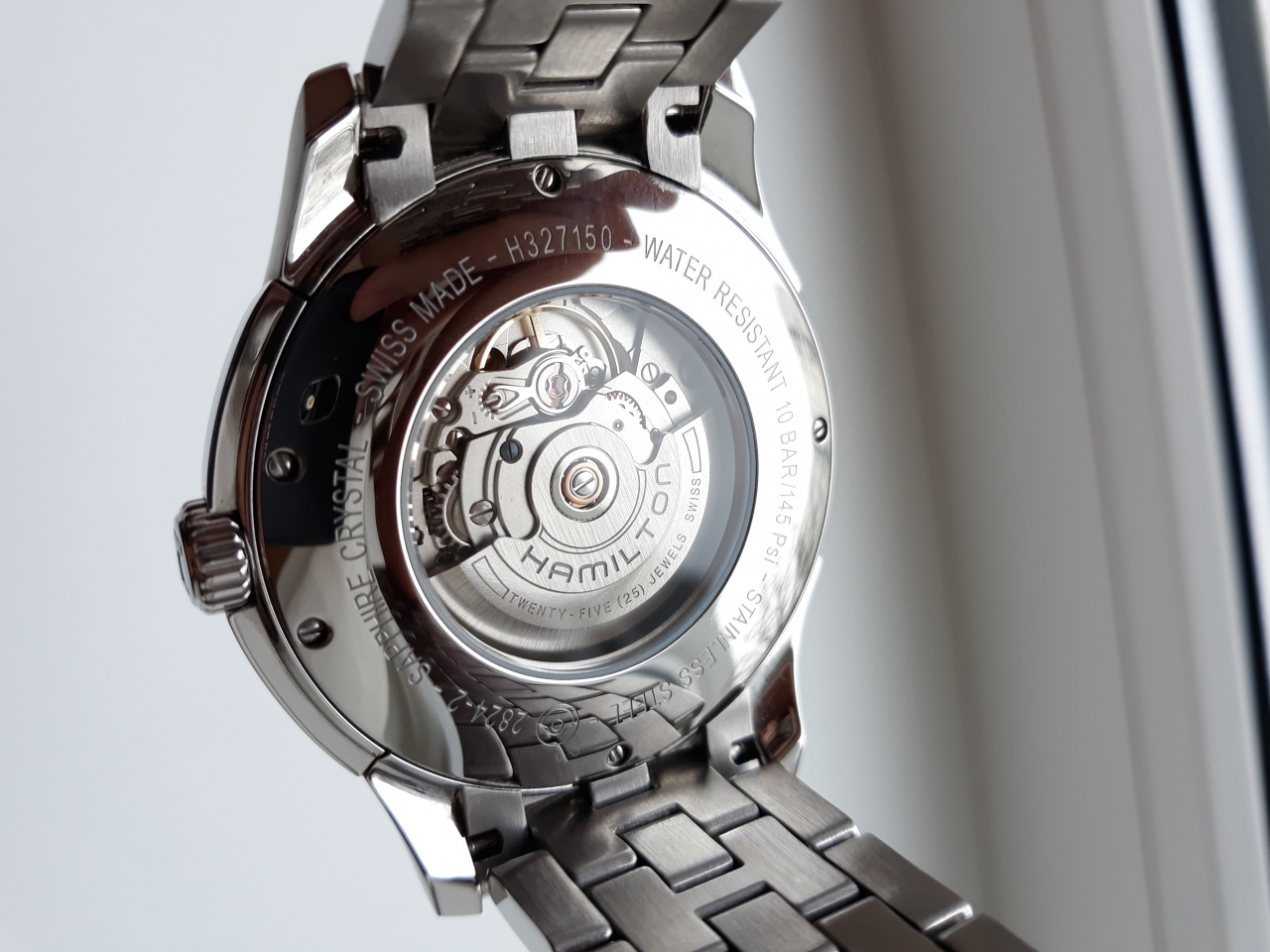 Задняя крышка сапфировая прозрачная, механизм очень красив - доведен Hamilton до эстетического лоска.