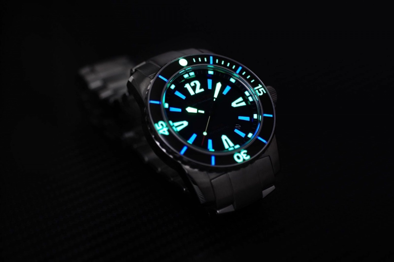 Очень качественный браслет с дайверским расширителем и фирменный силиконовый ремень с баклей с лого.