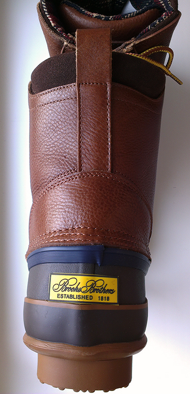 full grain кожи бизона пришито к галоше тройным швом. Изнутри вся кожаная часть утеплена шерстяной фланелью в шотландскую клетку. Язычок с клапанами для защиты от воды.