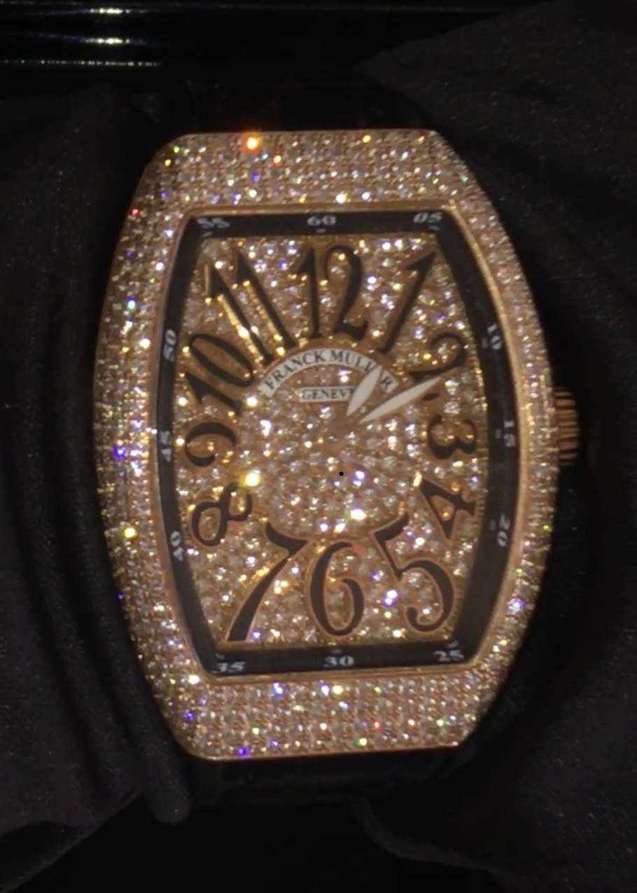 Franck Muller в 2017 году презентовал свою роскошную модель Vanguard Lady Quartz 35 mm Rose Gold Diamond Pave V 35 QZ D CD 5N.NR DIAM.NR 5N, которая была выполнена из драгоценного розового золота, полностью украшена бриллиантами, включая корпус, безель и даже поверхность циферблата.