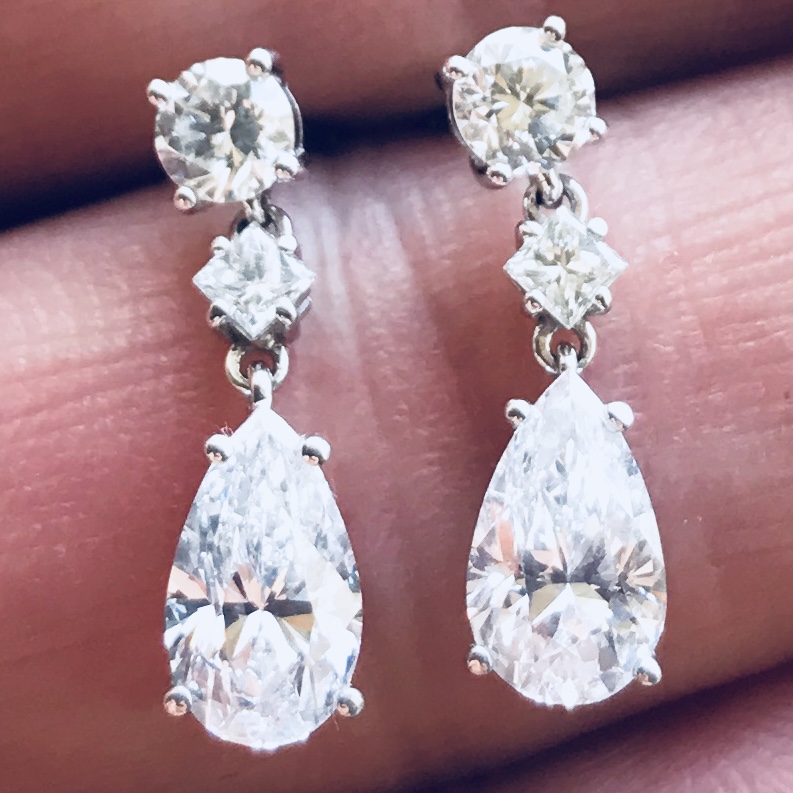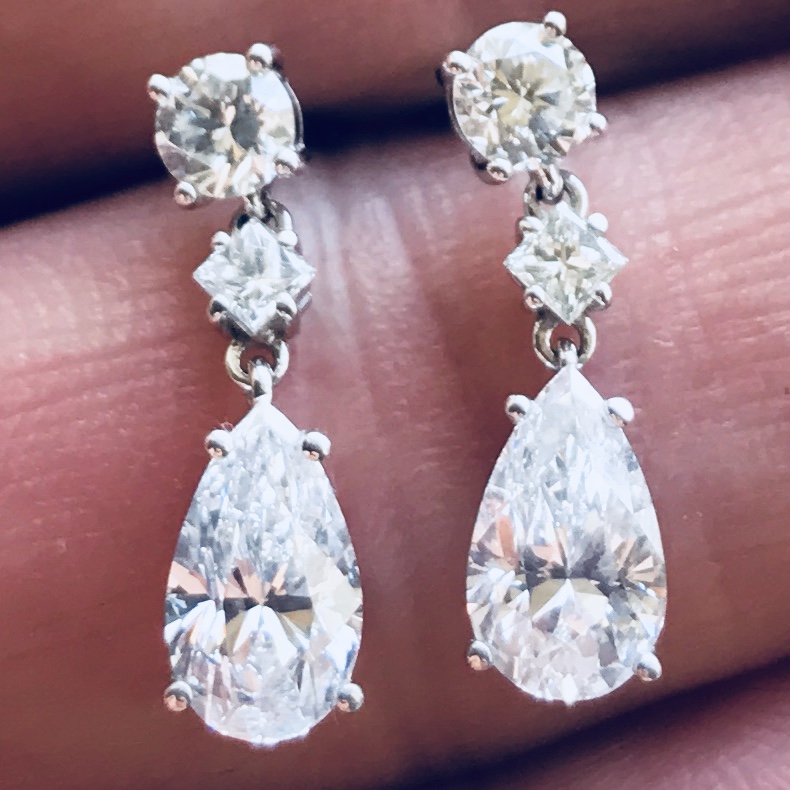 Роскошные серьги - белое золото, основные бриллианты по 1 ct.