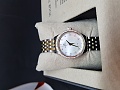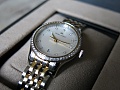 Циферблат: Перламутровый, с окошком даты на 6 часах, украшен 11 бриллиантами общим весом 0,06 K, Люминесцентные стрелки