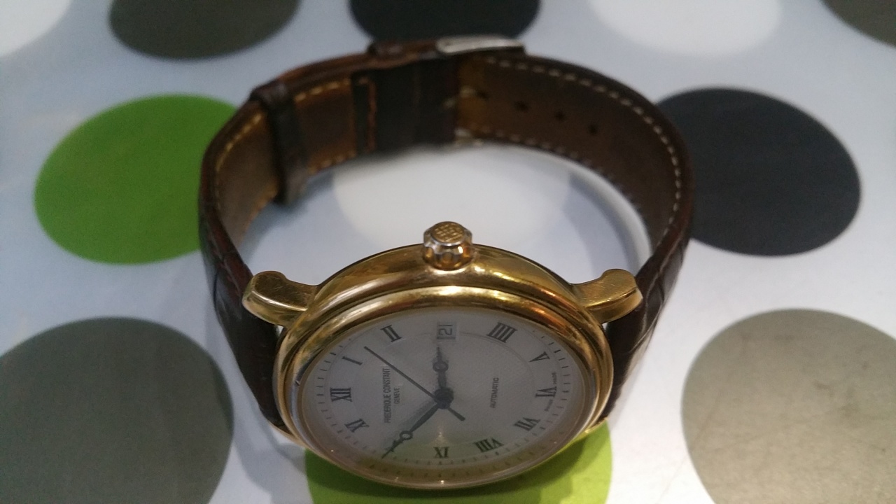 Тип механизма: Автоматический механизм, калибр FC-303 на базе ЕТА-2824 (25 камней, запас хода 42 ч, частота полуколебаний баланса 28800 полуоб/час.) Материал корпуса - сталь с злотым напылением 10 мк. Водозащита 30 м. Гильошированный циферблат с римскими цифрами и стрелками "a-pomme" в стиле Бреге, защищен надежным сапфировым стеклом.