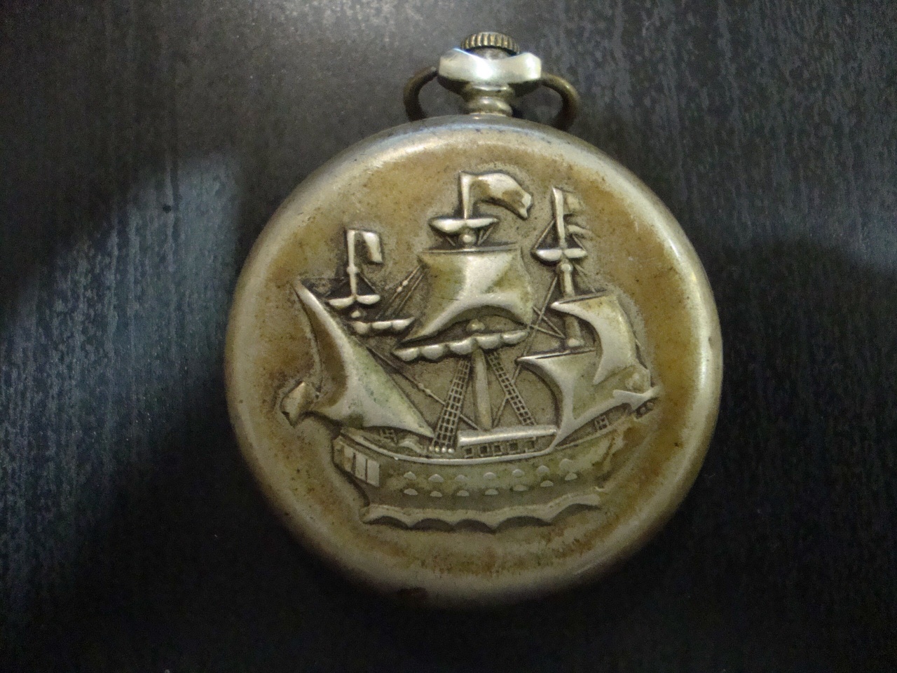 Карманные часы Molnija (Молния) с изображением парусника на крышке