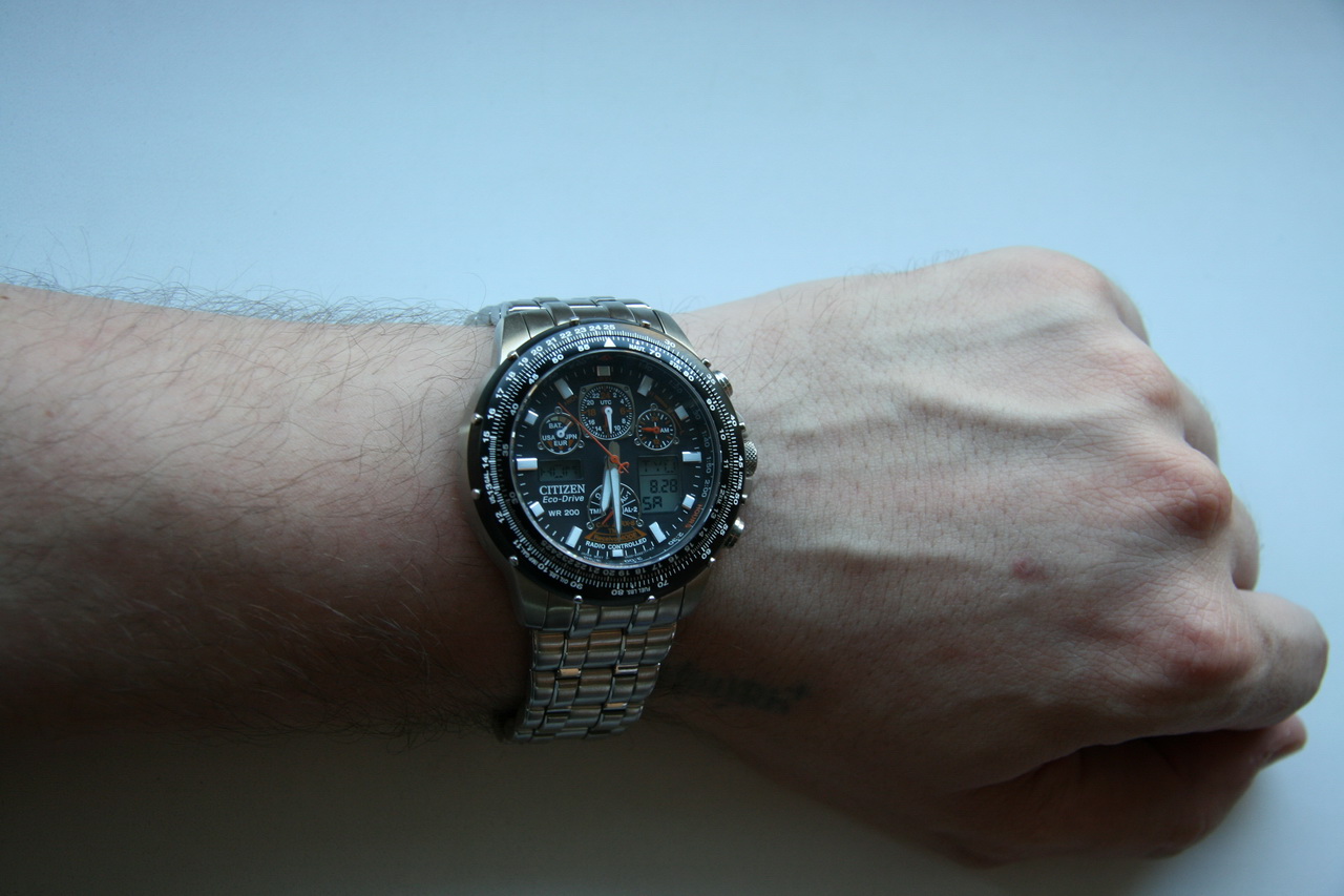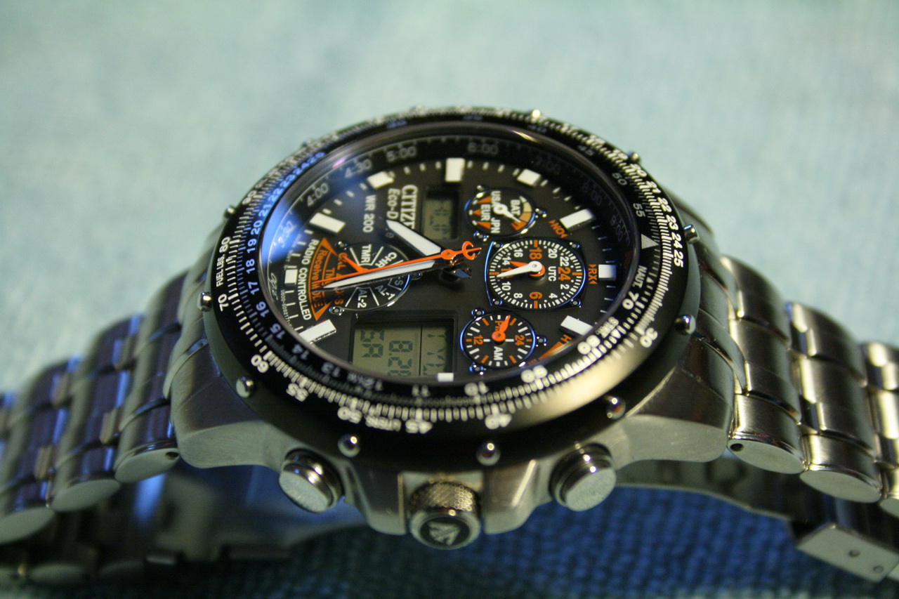 синие! Уж очень шикарные фото на форуме) вживую я так и не нашел. И тут я вспомнил ролик-презентацию в Интернете, часов Citizen Super Skyhawk! Как они там здорово переводили стрелки, сами, между разными часовыми поясами!