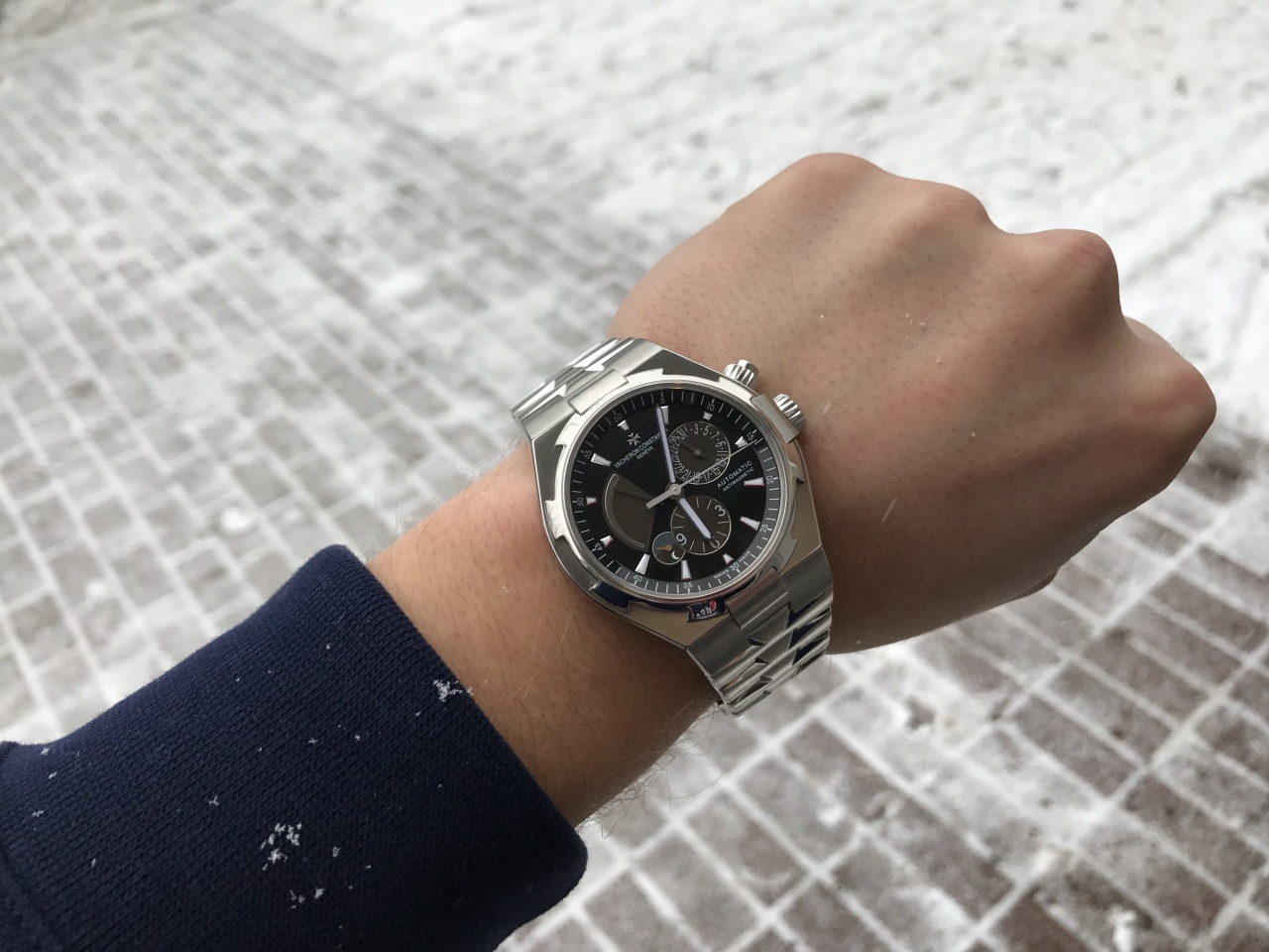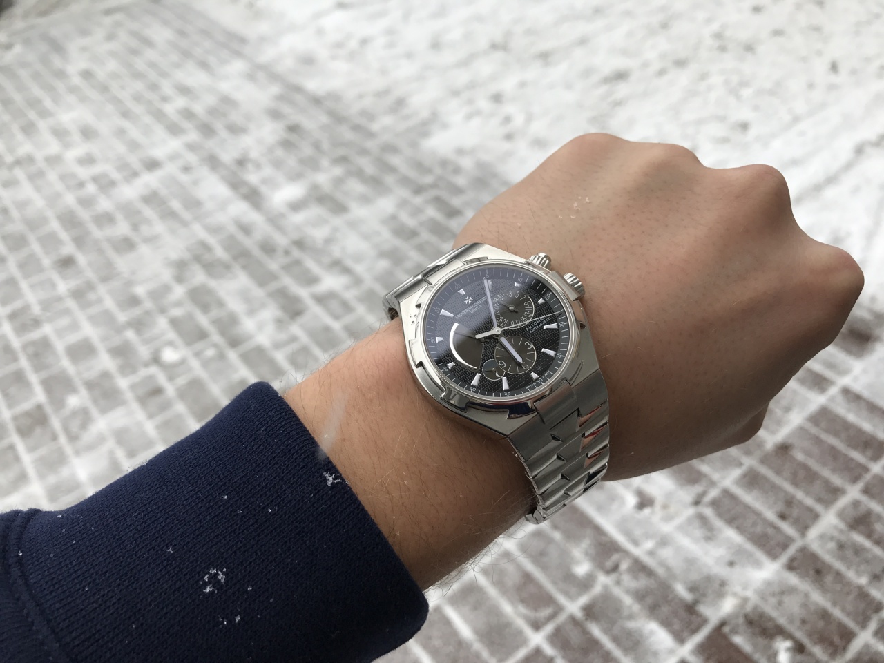 Шикарный крупный Overseas , действительно часы как новые! Никогда не полировались! куплены у оф дилера в Москве! Были получены в подарок и никогда не выходили из коробки! Очень красивый черный гильошированный циферблат с темно коричневыми озерами!