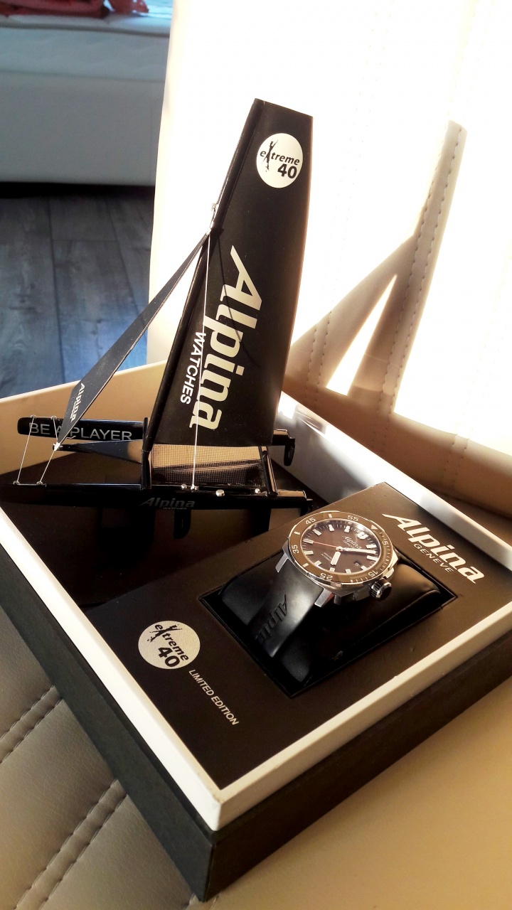 Часы лимитированной серии. Коробка от них заслуживает отдельного внимания, Яхта, при чем она с установленным парусом даже в закрытом виде (размер примерно как 2/3 упаковки копировальной бумаги А4.