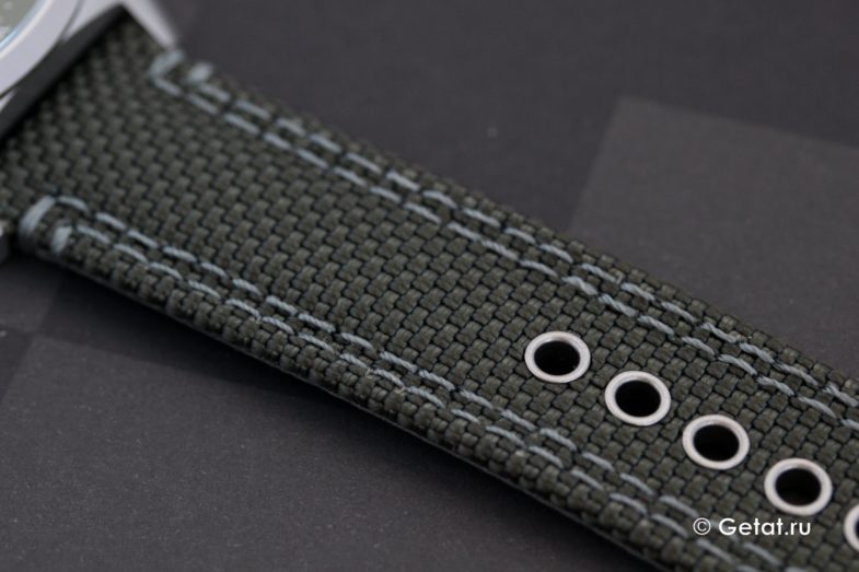 Корпус достаточно крупный за счет длинных ушек, так что модель на руке носится скорее как 43-44 мм. При этом, разумеется, часы легкие и никакого дискомфорта при длительной носке не доставят. Отделка корпуса весьма неплоха — это касается как полировки, так и геометрии. Более того, рант здесь сделан как бы отдельно, между ним и основной частью корпуса есть углубление. При этом на самом ранте имеется резкая грань, которая отлично выполнена. Все это добавляет корпусу некоторую нарядность, хотя ушки и основная часть обработаны пескоструем и выглядят как элемент военного самолета. Неплохо.