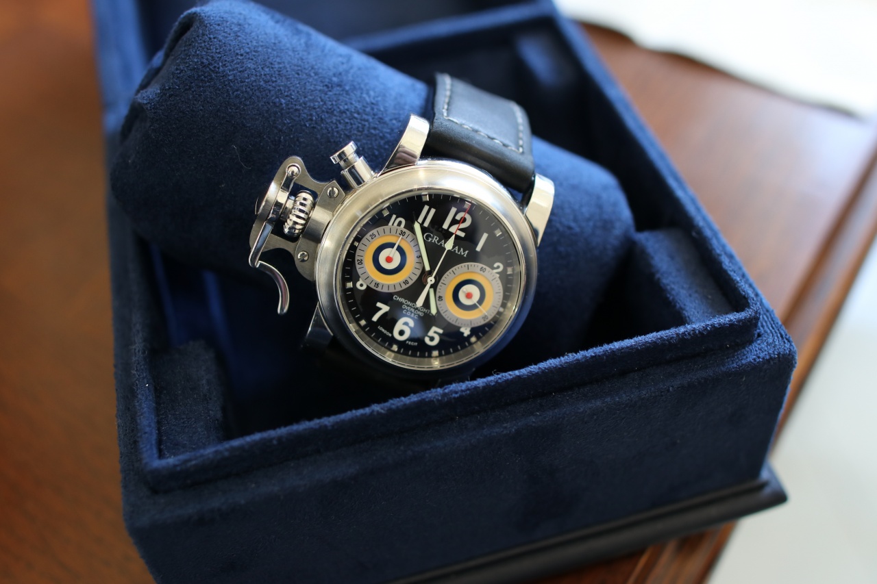 Прекрасный ультра редкий Graham! Очень харизматичные озера в виде логотипа ВВС Великобритании! Лимитка в 250 штук! Ход великолепный! Часы не полировались! Оригинальный ремень на 3+ !