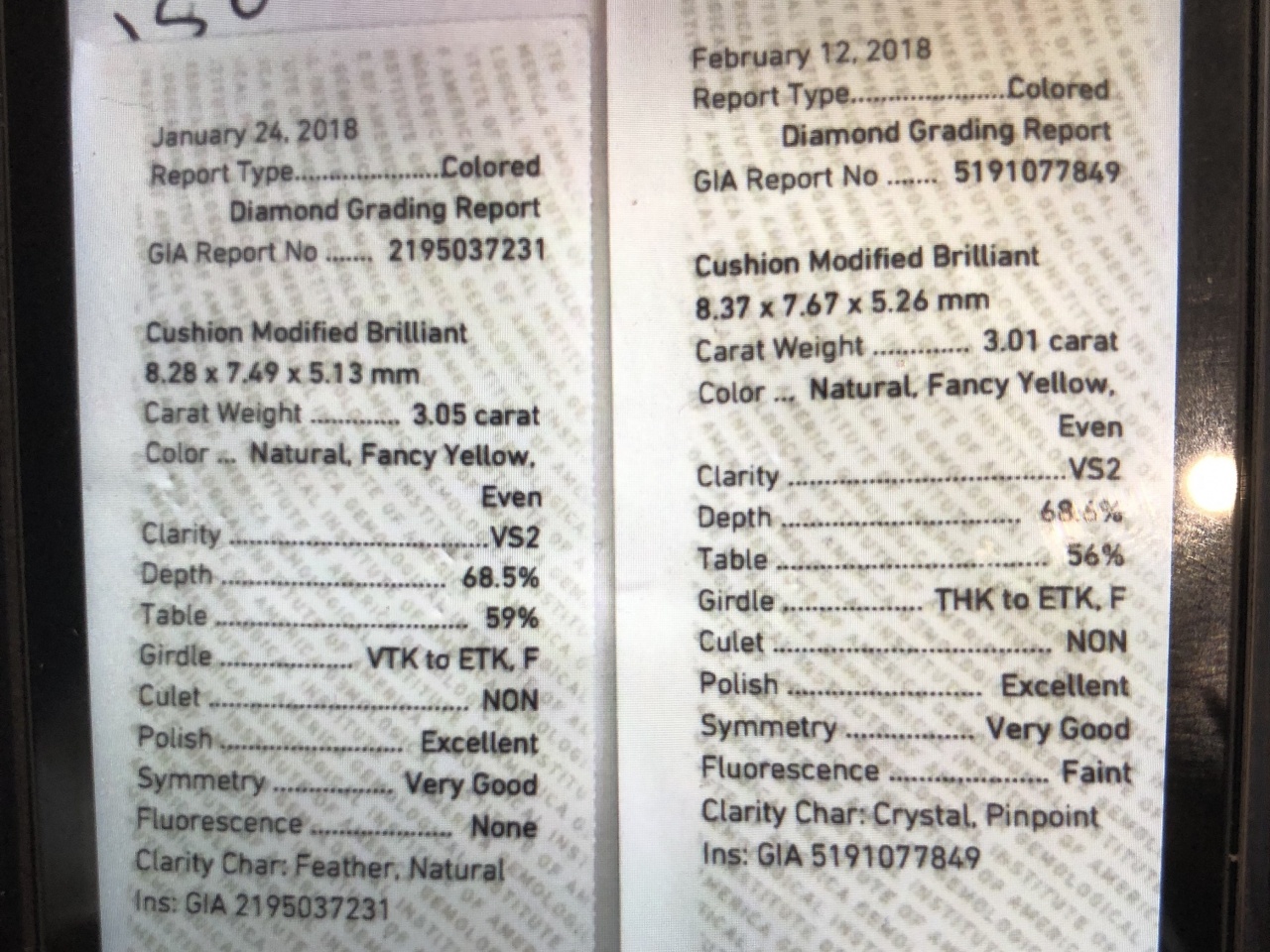 3.05 Cushion Fancy Yellow/ Natural/ VS2/ EX-VG/ None