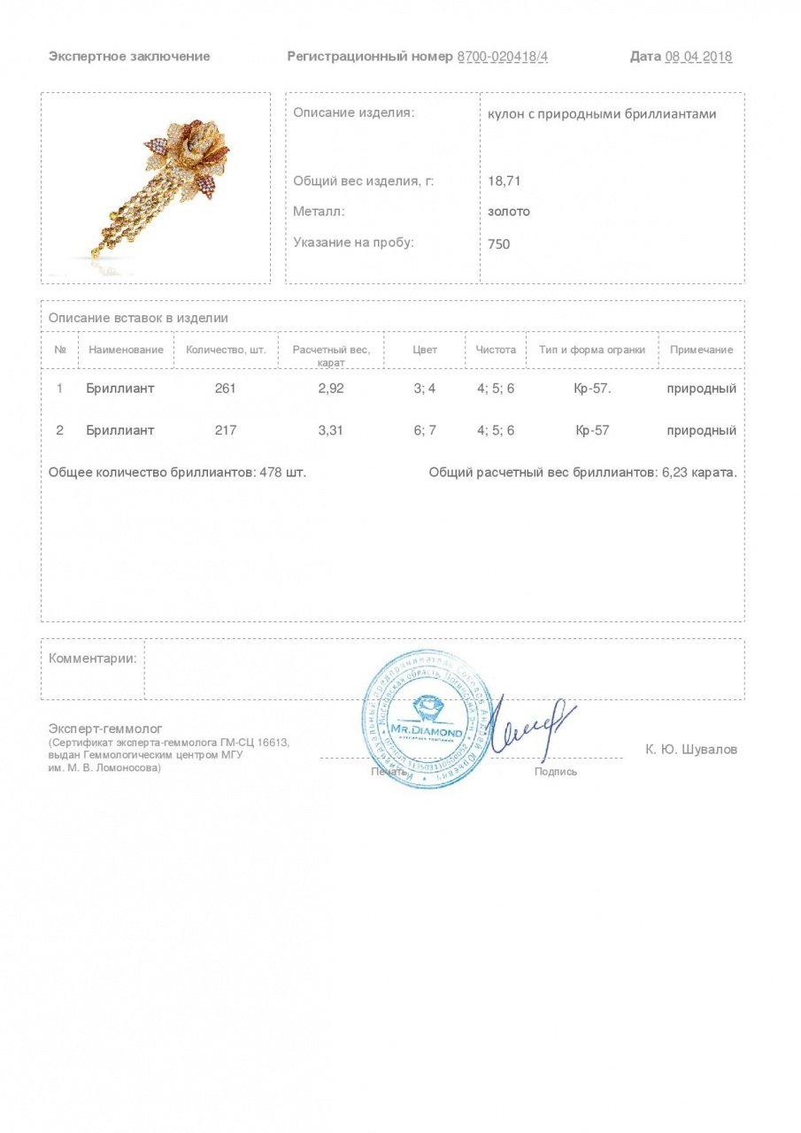 Итальянская золотая подвеска с бриллиантами 6.23ct