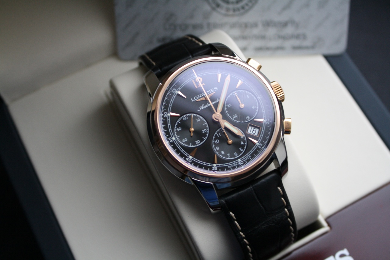 Уважаемые форумчане, в продаже роскошный топовый хронограф от Longines. Часы в отличном состоянии, сделана легкая освежающая полировка, ход -2 секунды в сутки, амплитуда более 300. В комплекте: часы, карта и коробка.