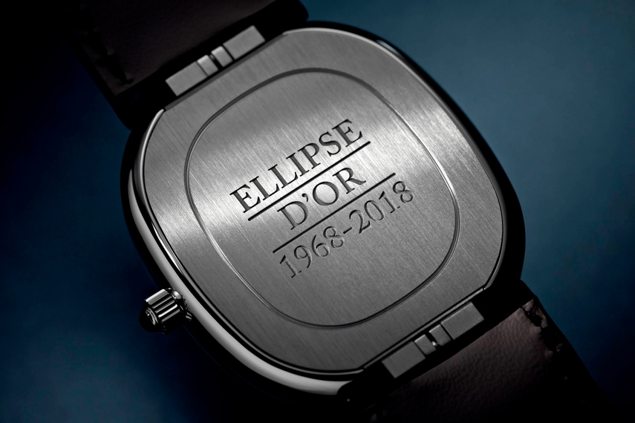 Модель получила платиновый корпус 39,5 х 34,5 х 6,58 мм. Корпус дополнен циферблатом из белого золота, на котором сложная гравировка скомбинирована с черной эмалью. С тыльной стороны корпус закрыт глухой задней крышкой с надписью «Ellipse d’Or 1968-2018». Под крышкой работает автоматический калибр 240 с 48-часовым запасом хода, которым модели Golden Ellipse оснащаются с 1977 года. Носить часы предлагается на черном ремешке из кожи аллигатора, снабженном застежкой, повторяющей форму корпуса. В комплекте поставляется пара запонок из белого золота с аналогичным дизайном.