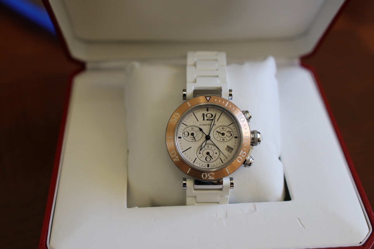 ( Женский ) Cartier Pasha Seatimer Chronograph ( Белый каучук , Сталь/Розовое золото, Кварц )