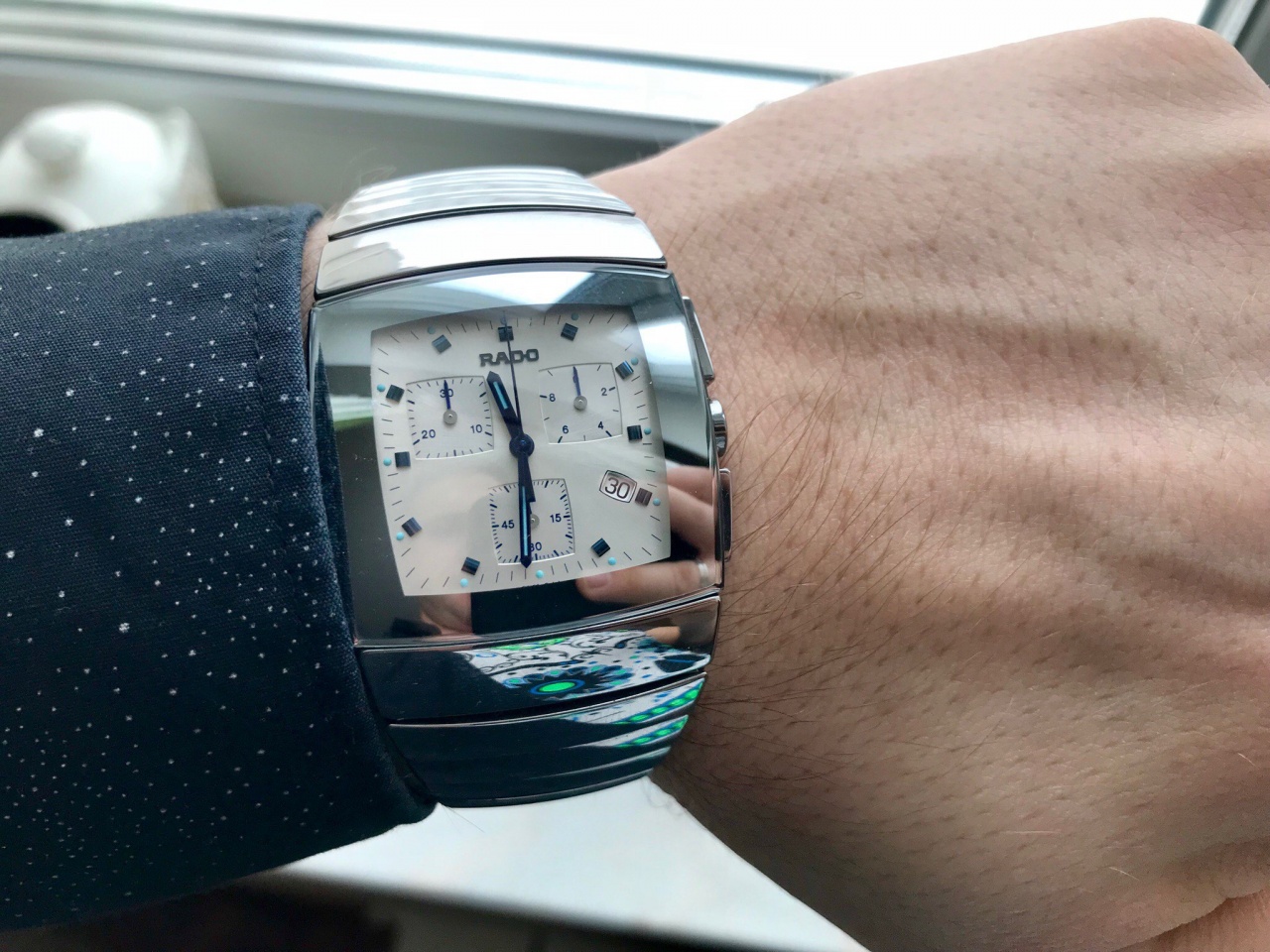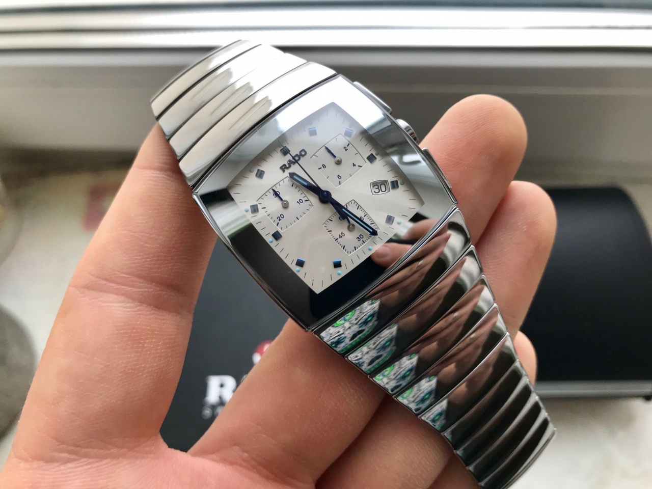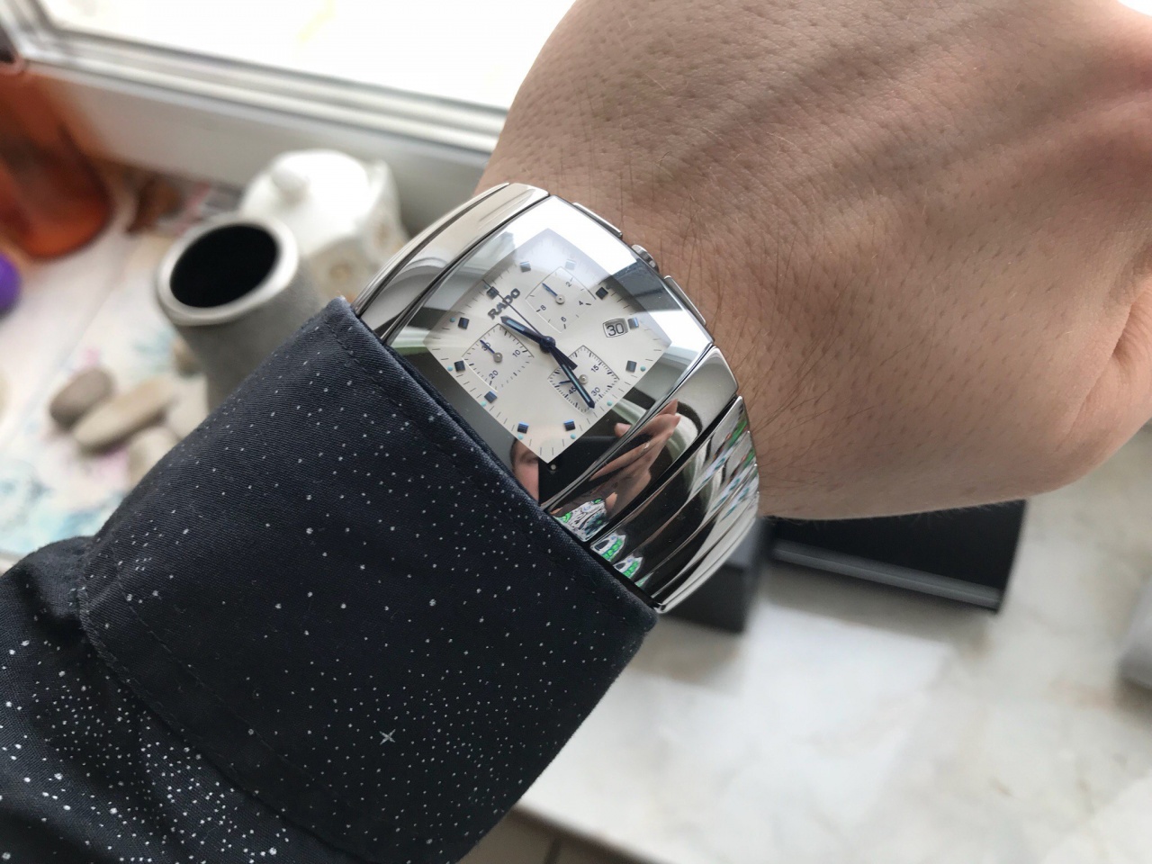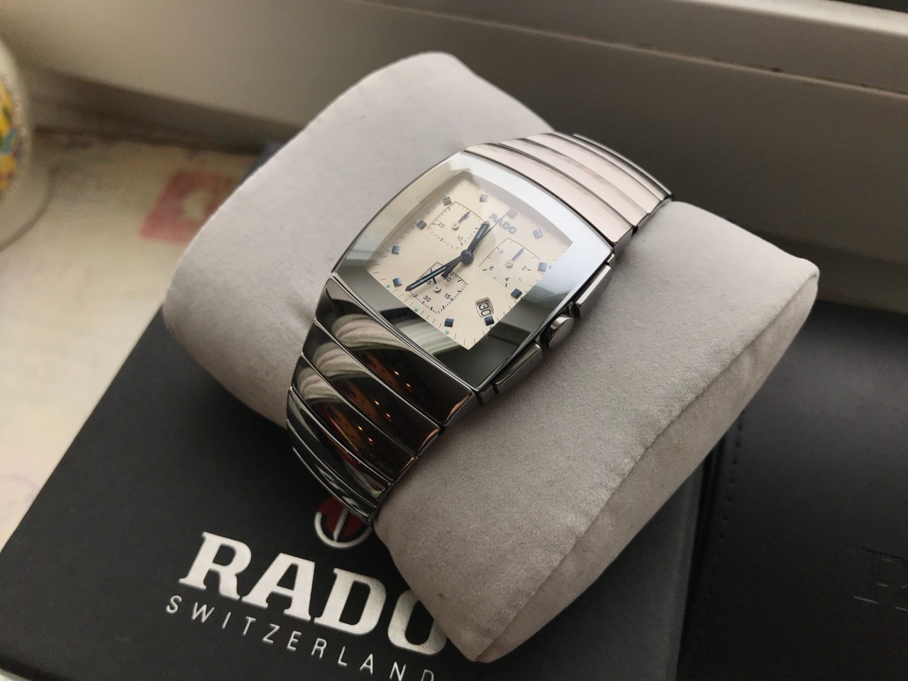Оригинальный, стильный и просто очень красивый хронограф от Rado в лучших традициях их самой популярной и узнаваемой линейки Sintra. Корпус керамика. Крупная модель, на мужскую руку. На запястье смотрятся бесподобно! Потрясающе стильные и привлекающие внимание часы. Ценник в бутике 209 000 руб. Состояние шикарное.