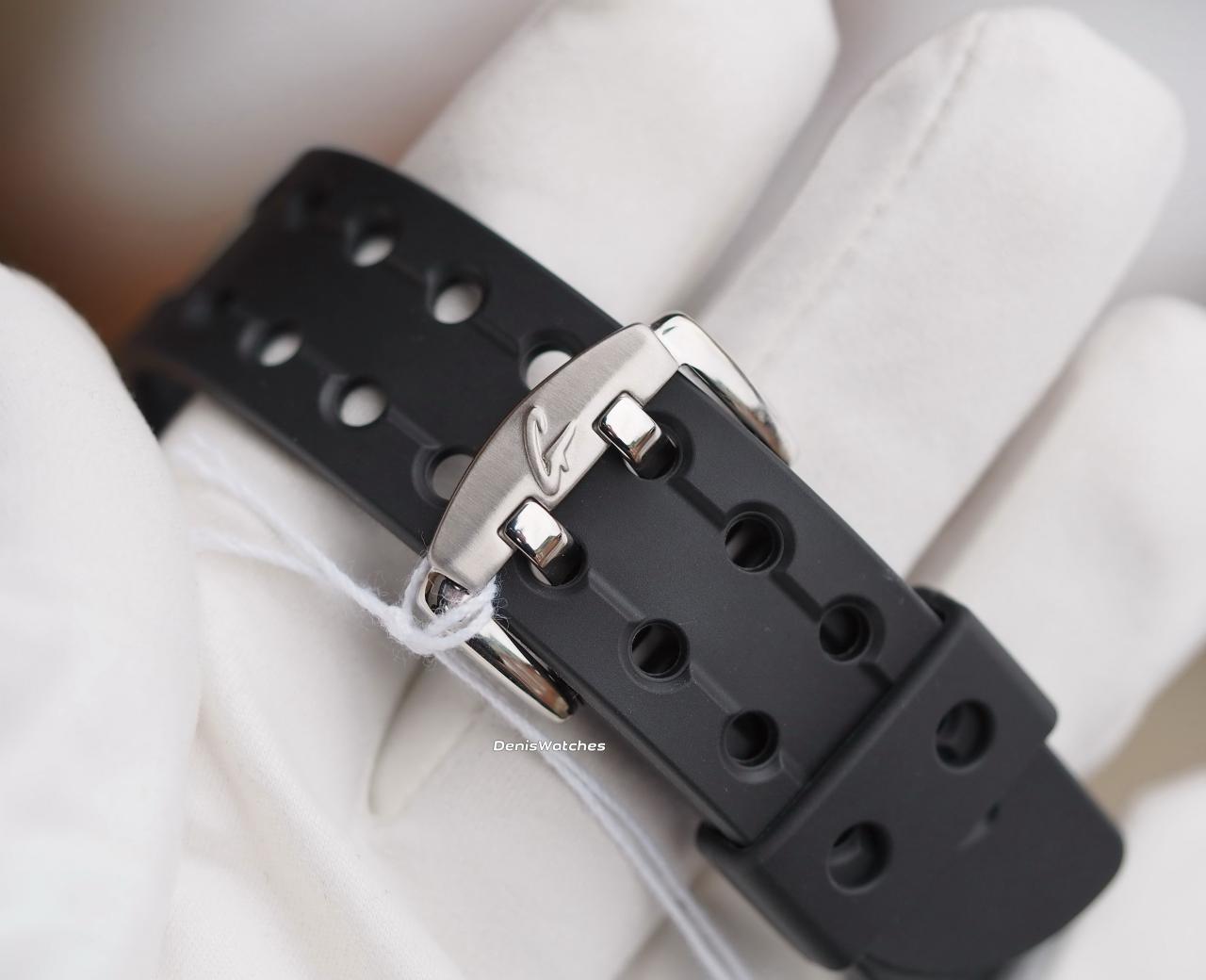 Особо прочная противоударная конструкция защищает механизм от ударов и вибрации: асимметричный цельнометаллический(!!!) корпус в обрамлении пластиковой защиты, глубокий волнистый безель