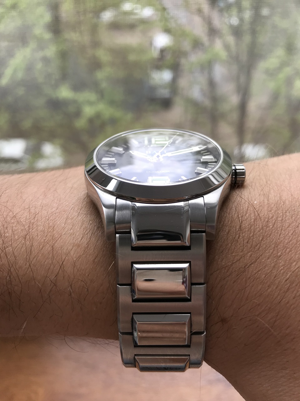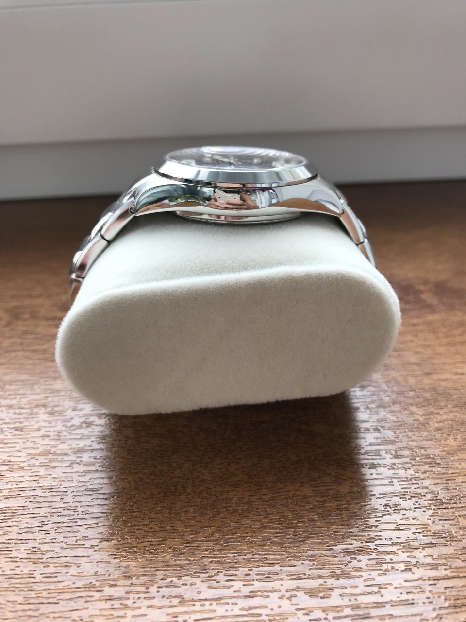 Часы в отличном состоянии, на полированных частях есть мелкие следы носки, никаких глубоких царапин, сколов, вмятин. Ход часов потрясающий 0..+1 сек/сутки без дополнительных регулировок!!! Сразу после получения новых часов пришлось обратиться в официальный сервис для удаления пылинки под стеклом (есть заказ-наряд). В остальном никаких нареканий, часы носились иногда и только в офис, жестких условий и воды не видели.