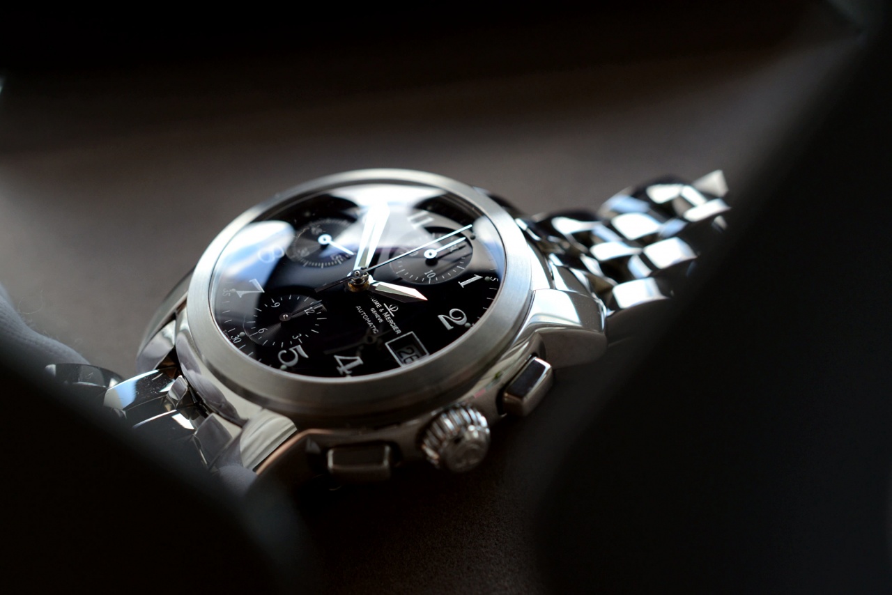 Функции хронографа - секунды, минуты и часы, счетчики «утоплены» в циферблат.