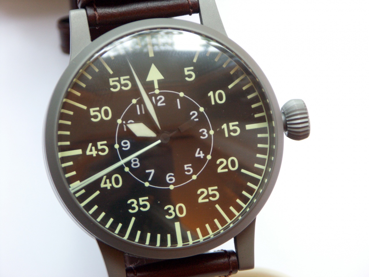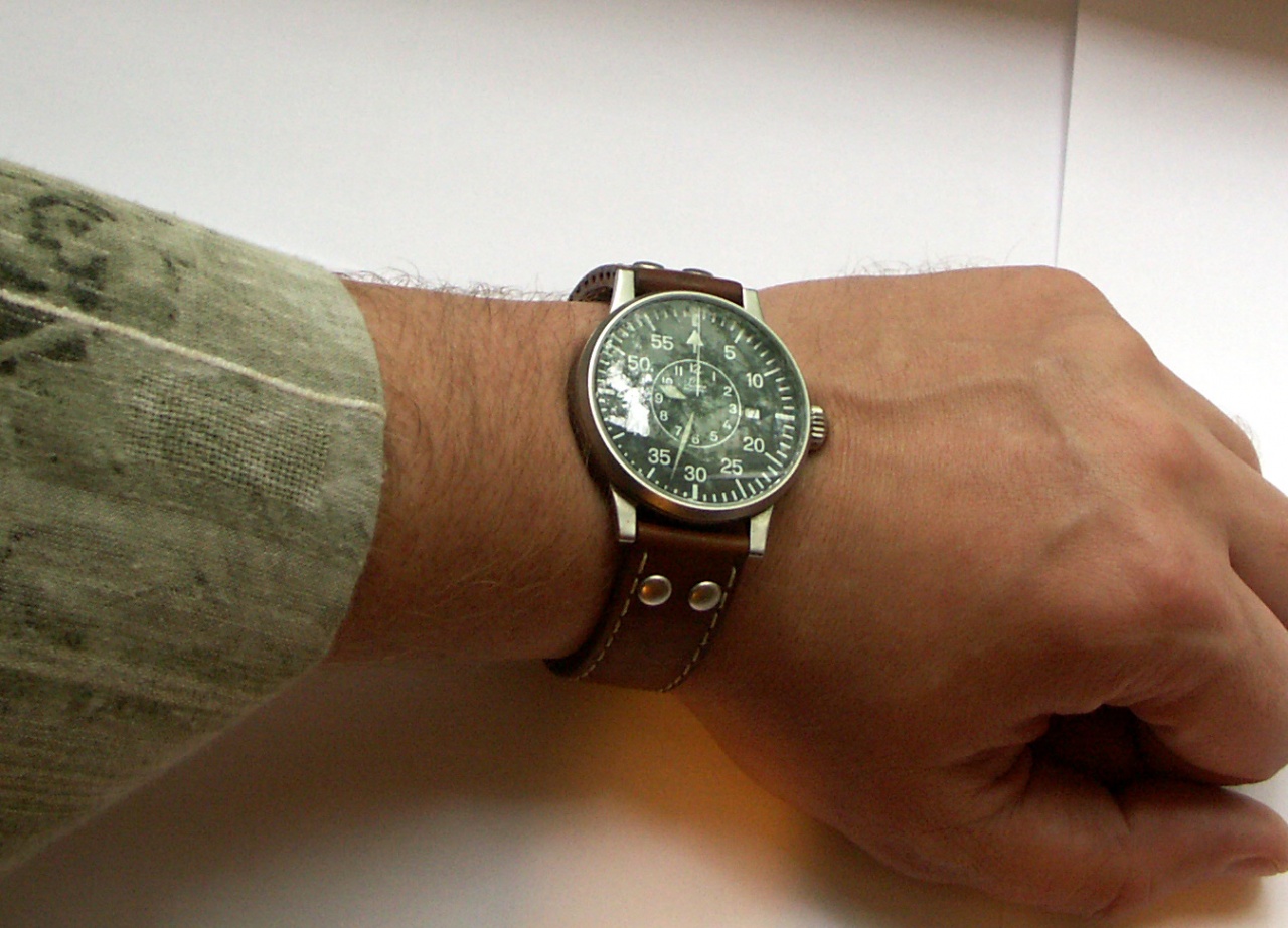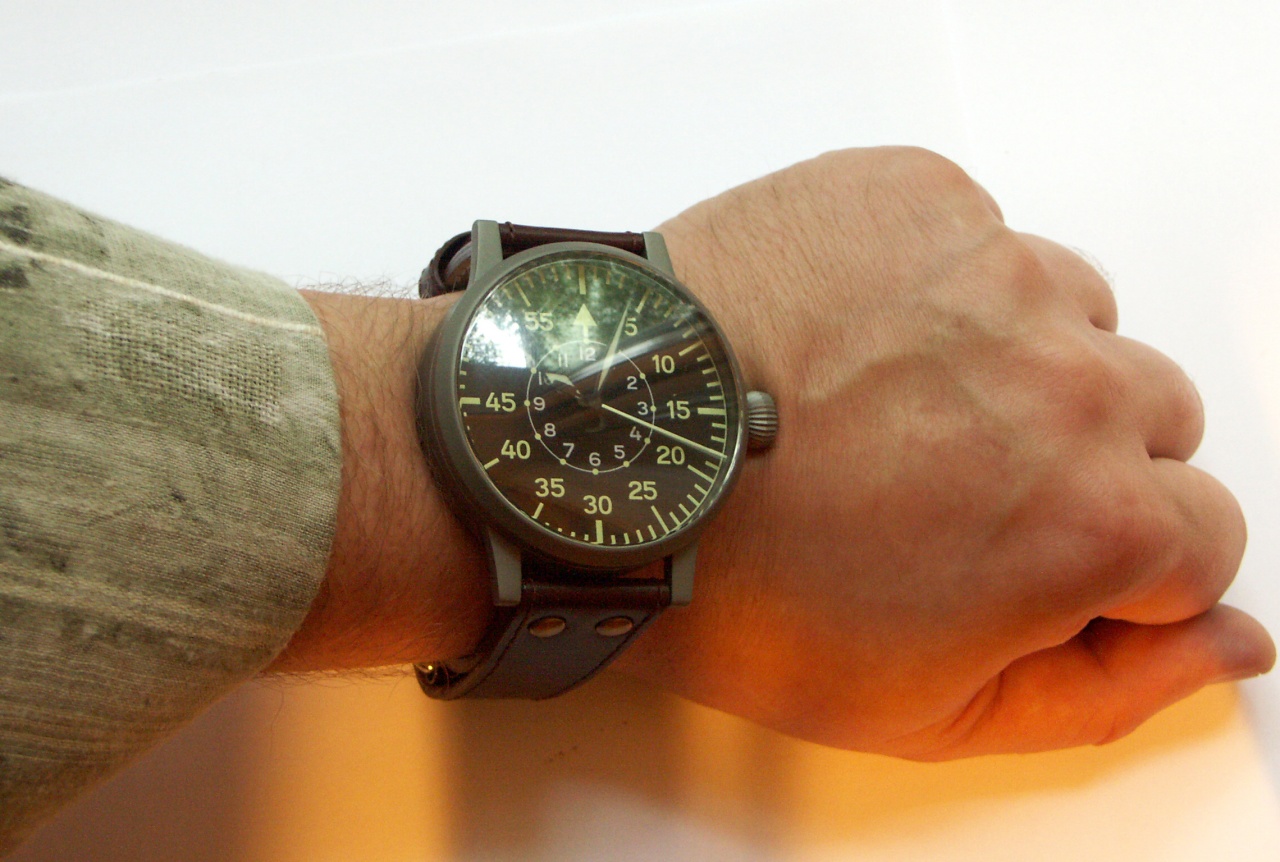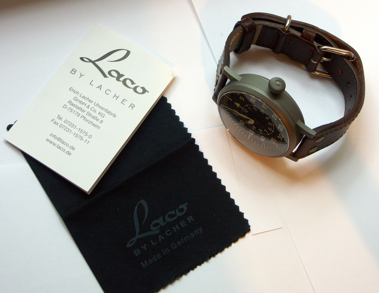 В период очередного душевного неспокойствия, которое бывает редко, но постоянно, залез на сайт LACO. Типа, как там поживает мой друг Питер? Речь, конечно, шла не о том, чтобы просто зайти, а еще и посмотреть, продаются ли «Пилоты» в оригинальном размере. Ну, пацанские, 55 миллиметров? К сожалению, они были. Рука сама потянулась к телефону, чтобы спросить (только спросить и все, чесслово! Не покупать ни разу, только спросить!) у герра Пфайффера, сколько же реплик пилотов в 55 мм осталось… Их-то и было выпущено всего 50 штук. Может, они проданы все давно? Может, Питера забрали в армию? Нет. Питер оказался на месте, и поведал, что осталось «драй штюк», а именно номера 43, 45 и 47. И все, больше просили не занимать. Ну, дальше понятно. Кто-то другой, а не я, сказал, что часы с №47 я беру. Дальше началась вторая серия моих лакостраданий. За последний месяц сайт поменял дизайн. В нем исчезли такие ненужные штуки, как архив моделей. Выкинули в мусорник описания часов. А и впрямь, кому они нужны? Все должны знать с молоком матери! То есть с муттермильх! Ну и оставили по одной фотке каждой модели, вместо фотосессии в 10-15 картинок. Я просто вижу, как на сайт LACO зашел оберштурмбадминистратор и сказал: мусор убрать! Не рассуждать! Бистро! И все! Стало чисто и пусто, как в башке после Нового года. Купил, в общем. Нажал кнопочку.