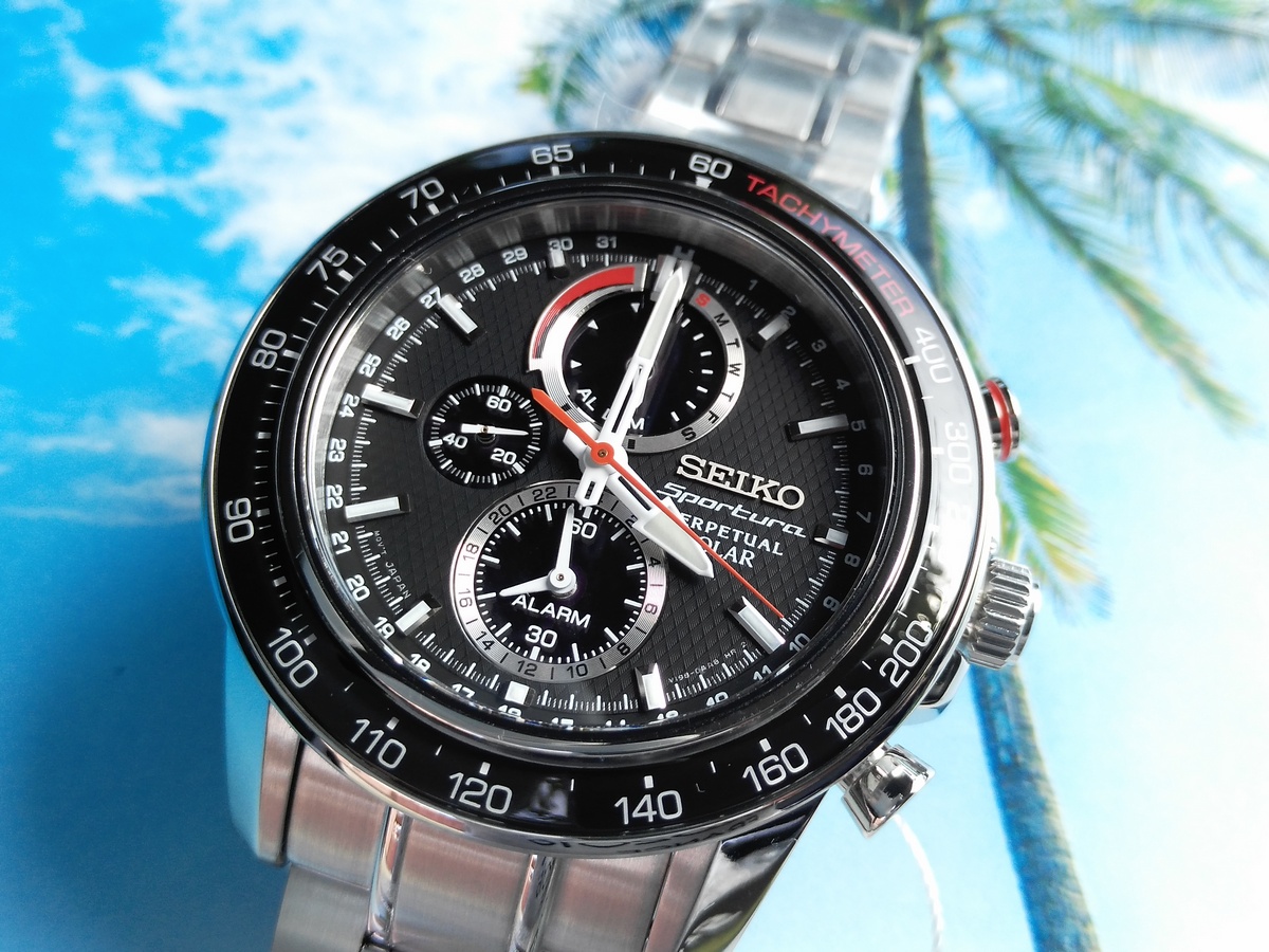 Отличная модель от Seiko на механизме V198, включающем в себя солнечную батарею,