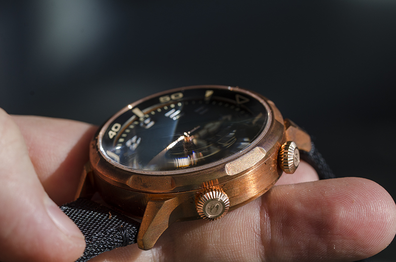 Оригинальный дизайн (с чертами знаменитого Альпиниста и винтажных Суперкомпрессоров), настоящая бронза CuSn8, сендвич циферблат, яркий люм, продвинутый калибр Miyota 9015, Сферическое САПФИРОВОЕ стекло с антибликовым покрытием, отсутствие уродливого окошка даты и главное - ОЧЕНЬ КРАСИВЫЙ "ВИНТАЖНЫЙ" ЦВЕТ ЦИФЕРБЛАТА.