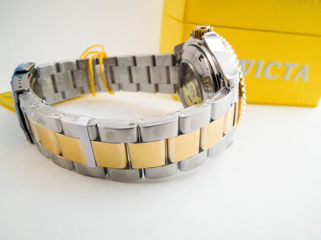 Браслет: матово-полированная хирургическая нержавеющая сталь серебро/золото (ионизированное покрытие золотом 21 карат – технология Invicta Gold Plated – 958 российская проба)