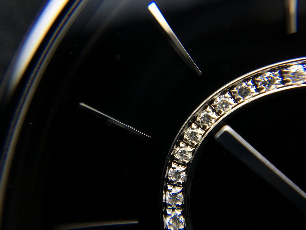 Монолитный керамический корпус, циферблат украшен 36 бриллиантами общим весом 0.104 ct