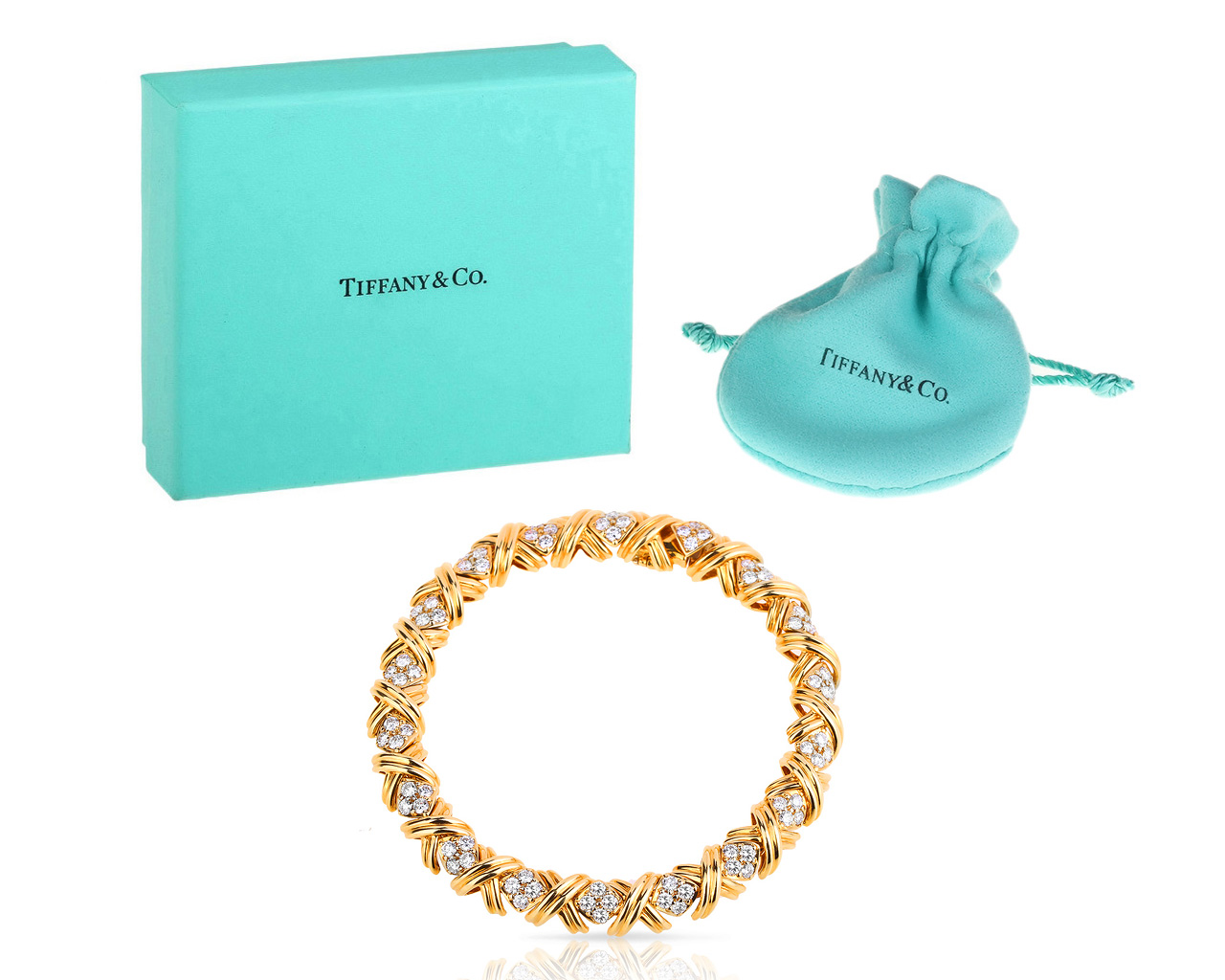 Золотой браслет с бриллиантами 2.25ct Tiffany&Co Signature X