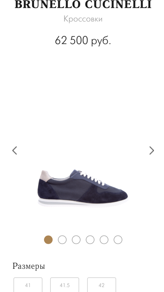 В продаже,новые мужские сникеры известной итальянской марки BRUNELLO CUCINELLI.Кроссовки изготовлены из натуральной замши тёмно-синего цвета с бархатистой текстурой,полуглянцевой телячьей кожи и текстурированного вафельного нейлона в виде сот.Вставки на пятке и язычке серо-бежевого тона перекликаются с оттенком клиновидной полосы на платформе.Внутри изделие отделано перфорированной натуральной кожей,что обеспечивает комфорт.Обувь очень удобная и лёгкая благодаря материалам союзки и подошве из Micro.Белоснежные шнурки завершают образ.