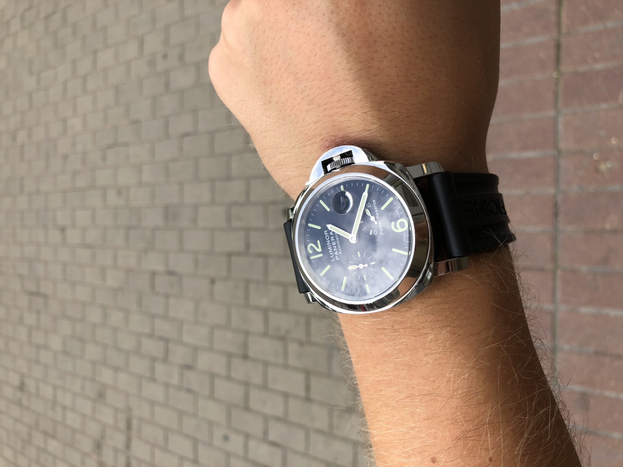 Отличный Panerai! Очень удачная модель, прекрасное сочетание функционала и прекрасного внешнего вида! Оба ремня в шикарном состоянии ( кожаный одевался от силы раза 2 ) полный комплект документов , отверток , сохранилась заводская пленка и транспортировочная накладная. Ход прекрасный!