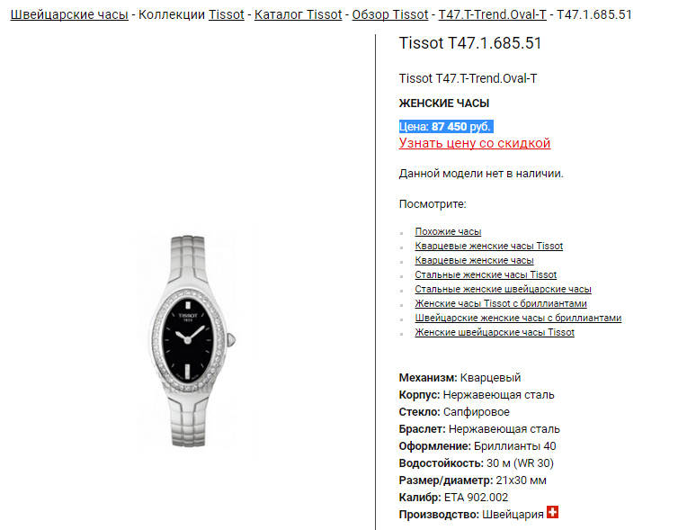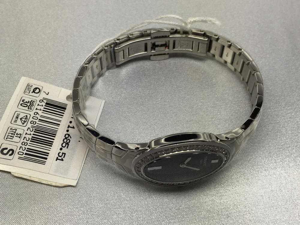 Модель женских часов T47.1.685.51 коллекции Tissot T47.T-Trend.Oval-T имеет корпус из нержавеющей стали овальной формы с инкрустацией, циферблат черного цвета с рисками / индексами, защищенный сапфировым стеклом, кварцевый механизм обеспечивает точность хода.
