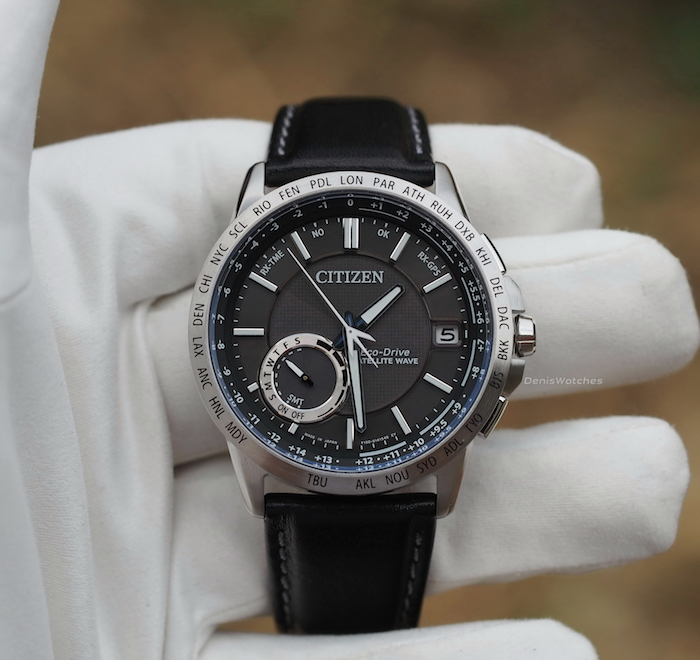 Cтальной трехстрелочник на ремне из серии Satellite Wave, с синхронизацией времени и часового пояса по спутникам GPS, на топовом калибре F150! Отдельный мотор на каждую стрелку, запас хода до 7 лет, точность всего +/-5 сек в мес!