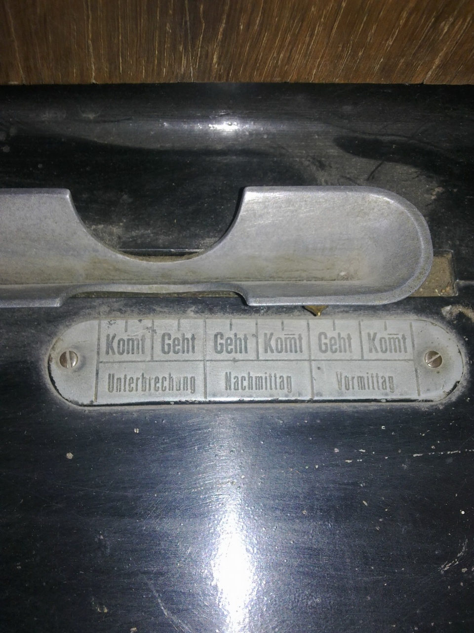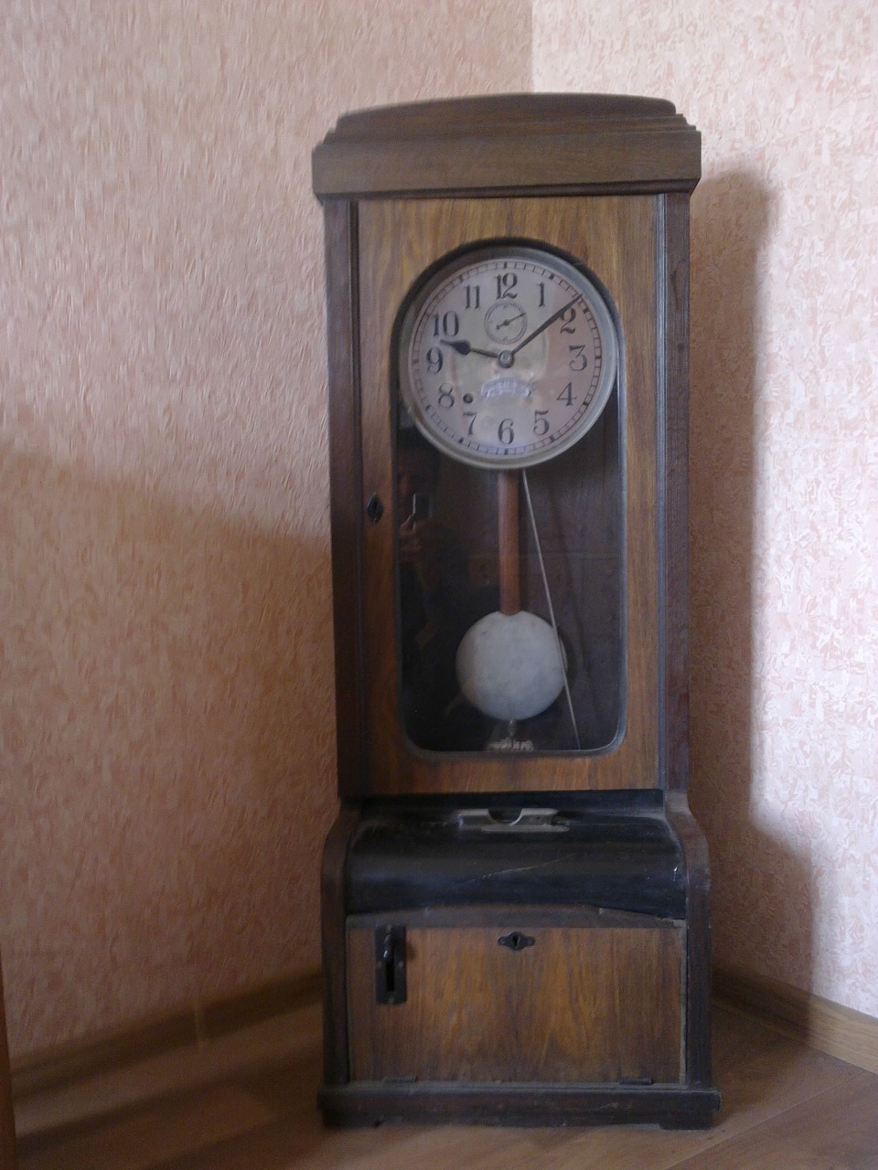 Это т.н. "контрольные часы" - "Time Recorder"( англ.) или "Stempeluhr" (нем.), проданные через сеть немецкого торгового дома "Kersting & Laborenz", занимавшегося, как раз, такого рода оборудованием. Истинного производителя, вероятнее всего, можно будет узнать только по штампу на задней платине механизма. Во вложении аналогичные часы с немецкого форума. Вероятнее всего, часы можно датировать 1920-ми годами.