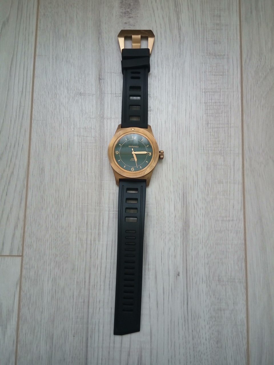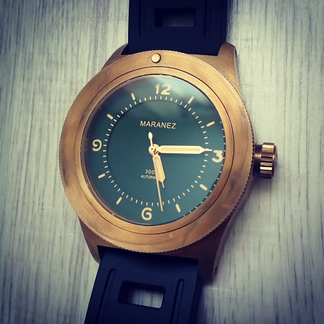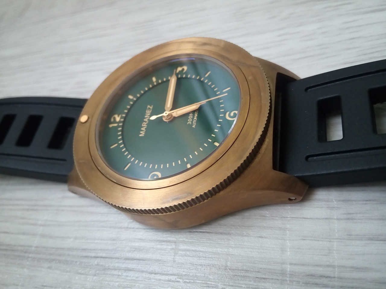 В продаже латунный дайвер в стиле "боевых плавцов" Maranez Talay с зеленым лицом. Часы можно сказать что новые, июль 2018г. Задумчиво примерялись на руку раз пять