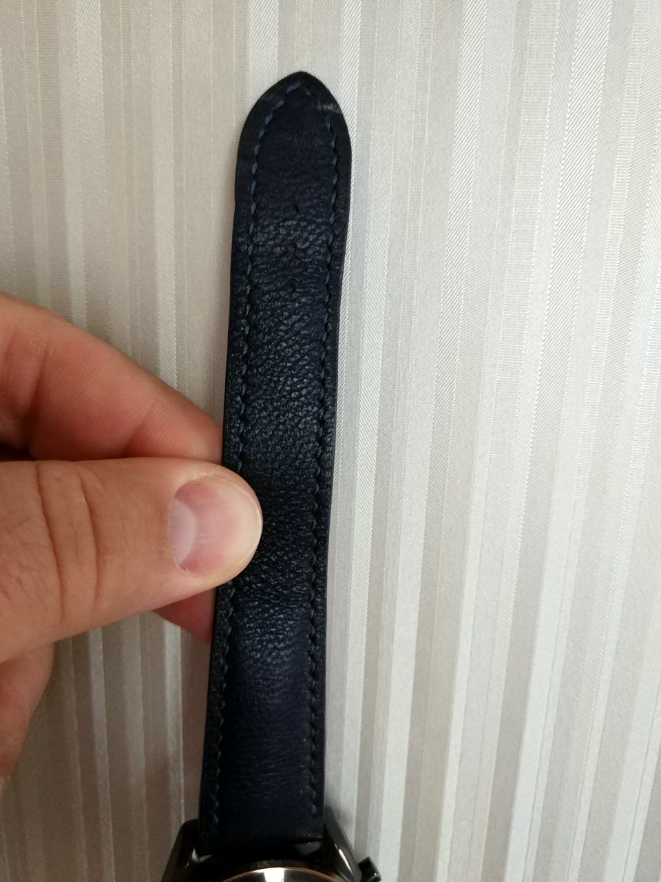 Синий ремешок смотрится благородно и красиво особенно на дневном свете. Я его ношу с часами в чёрном корпусе.