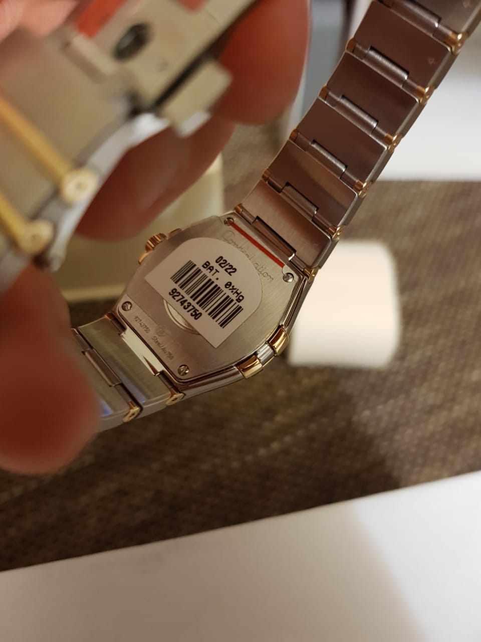 Безель из 18-каратного желтого золота с выгравированными римскими цифрами закреплен на корпусе диаметром 27 мм из нержавеющей стали, который дополнен браслетом из нержавеющей стали и 18-каратного желтого золота. В часах используется кварцевый часовой механизм 1376.