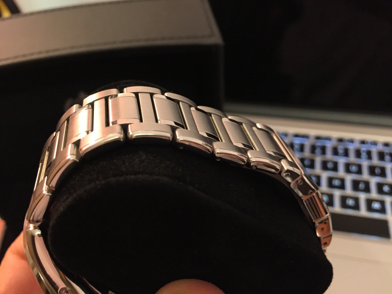 -Браслет и застежка конечно-же литые, имеющую сатинированную поверхность с элементами зеркальной шлифовки. Звенья крепятся винтами.