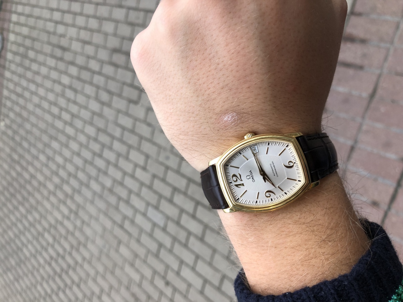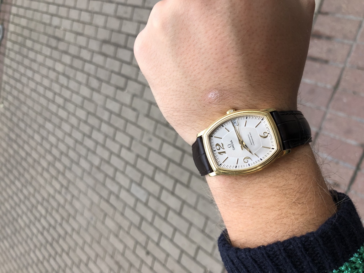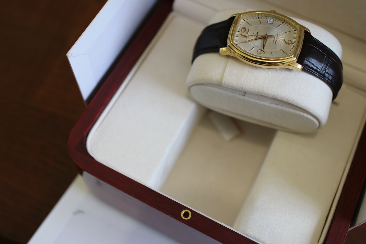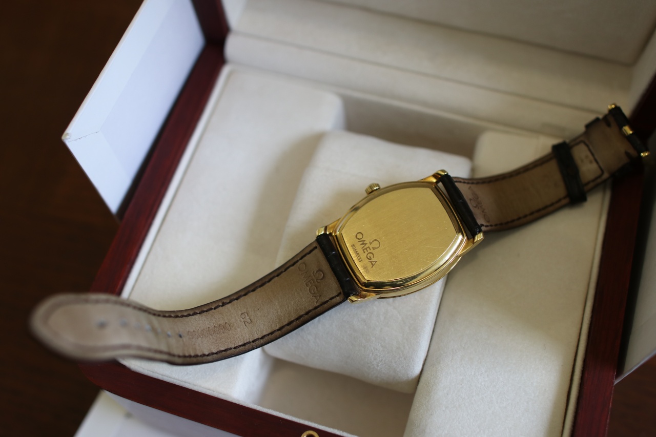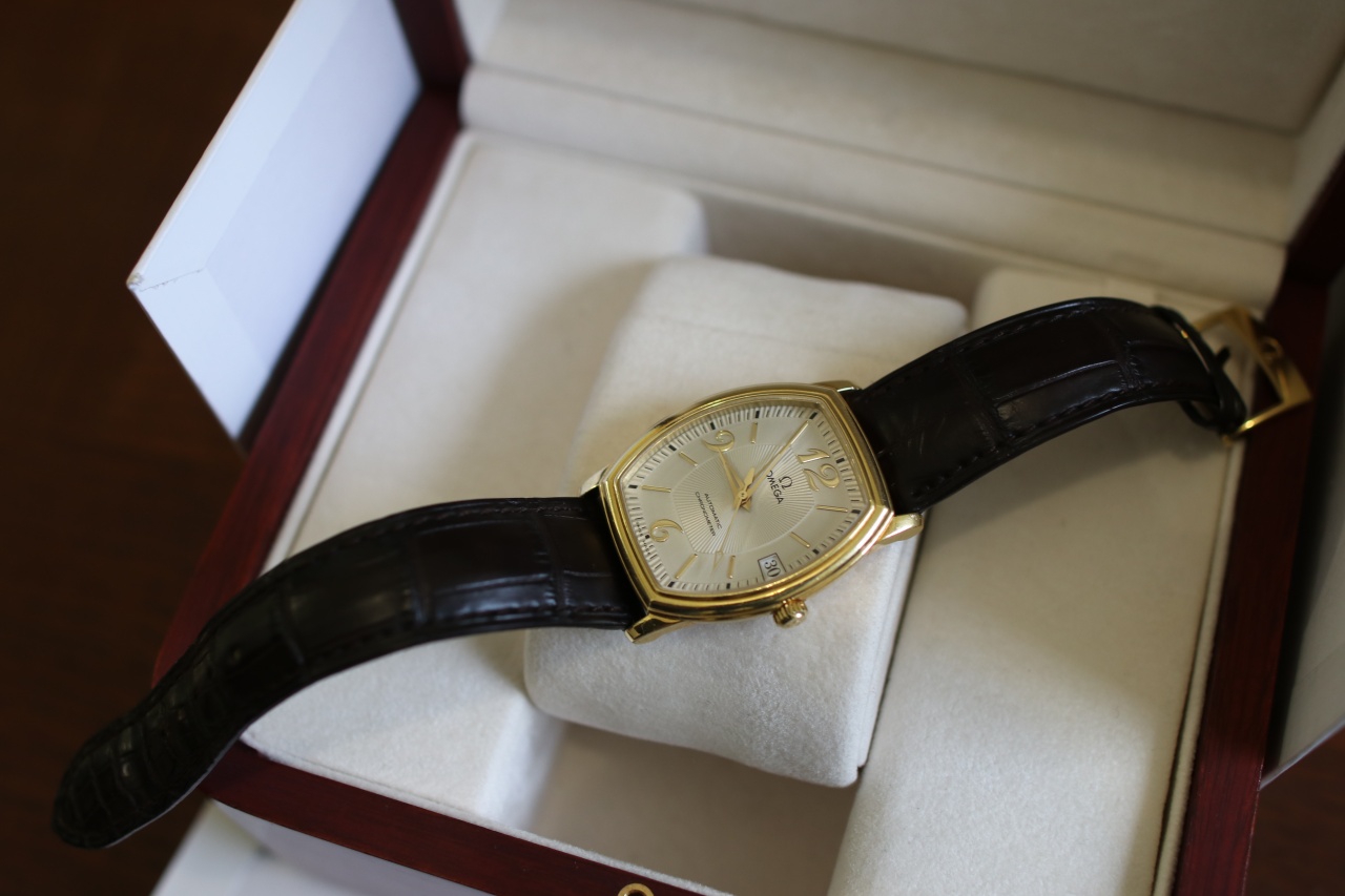 Omega De Ville Tonneau ( Комплект , Желтое золото , Серебристыйциферблат )