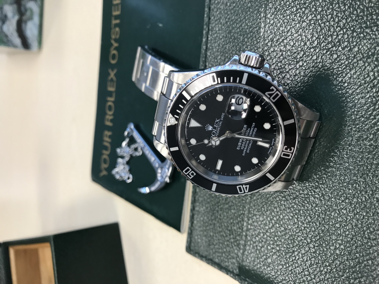 Продаю легендарные Rolex Submariner Date 16610. Часы покупались в 2003 году в Великобритании, все документы, коробки, гарантийные талоны, рекламные буклеты, сувенирный якорь Ролекс и даже календарик 2003- все сохранено в том же комплекте который был при покупке. Часы являются одной из пар в коллекции которая на текущий момент оптимизируется. Состояние отличное, ношение было аккуратным и не частым. На браслете имеются незначительные естественные следы ношения, все звенья в комплекте. Единственный хозяин. В конце прошлого года часы прошли полное ТО в «Точном Ходе» у Андрея Бабанина, о чем так же есть документы. У часов нет никаких недостатков ни по ходу ни по внешнему виду.