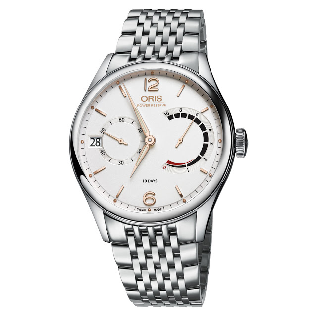 Новая модель Artelier Calibre 111 (Ref. 01 111 7700 4021 LS) от швейцарской часовой компании Oris имеет круглый полированный корпус, изготовленный из нержавеющей стали, диаметром 43,0 мм, водонепроницаемый до 30 метров. На торце рифленой заводной головки, расположенной на 3 часах, выгравировано наименование бренда Oris. Сапфировое стекло установлено на передней стороне часового корпуса (выпуклое, с антибликовым покрытием) и на его завинчивающейся задней крышке. Циферблат белого цвета, с позолоченными арабскими цифрами, продолговатыми часовыми индексами и стрелками. Часовая и минутная стрелки покрыты люминесцентным составом SuperLuminova белого цвета. На фланце имеются люминесцентные часовые точки. Модель оснащена мануфактурным швейцарским механизмом с ручным заводом Oris 111, с балансовой частотой 21600 полуколебаний в час (3 гц), десятидневным (240 часов) запасом хода, функциями индикации часов, минут (посредством соответствующих центральных стрелок), секунд (на соответствующем малом боковом циферблате, расположенном на 9 часах), даты (посредством соответствующего цифрового указателя в прямоугольной апертуре, расположенной на 9 часах), а также запаса хода (посредством соответствующего аналогового указателя, расположенного на 3 часах).