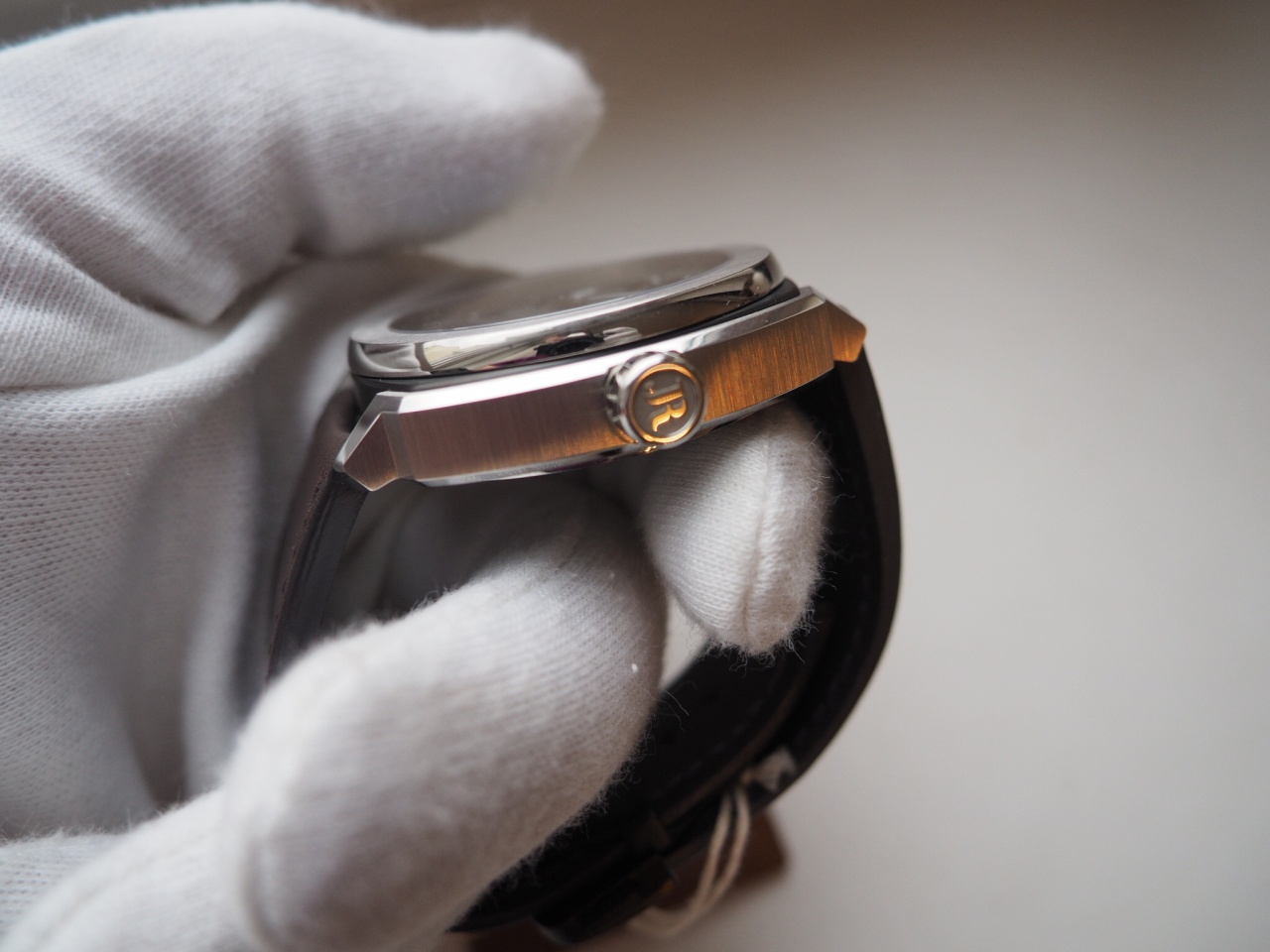 Прекрасное сочетание стального многосоставного корпуса, со вставкой из черной "подушки", сложным сочетанием различных типов полировки,