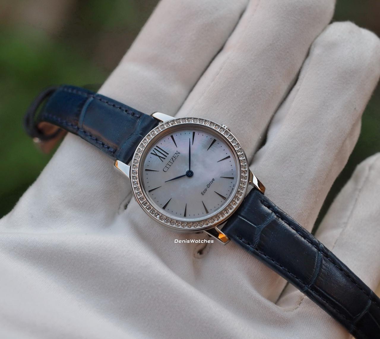 Элегантные женские часы с перламутровым циферблатом и кристаллами Swarovski на безеле