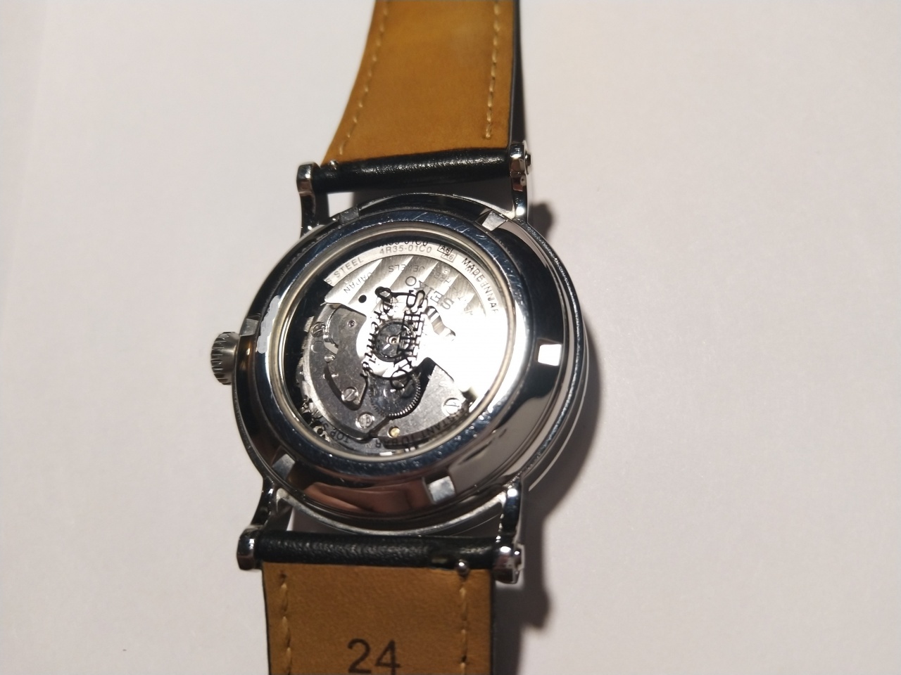 Продам классический, костюмный "трехстрелочник" на браслете, с указателем даты и серебристо-белым циферблатом. Нержавеющая сталь, сапфировое стекло, автоматический калибр 4R35, запас хода - не менее 40 часов, точность - не более +/- 5 сек. в сутки. Диаметр - 41мм. Водозащита - 10 бар.