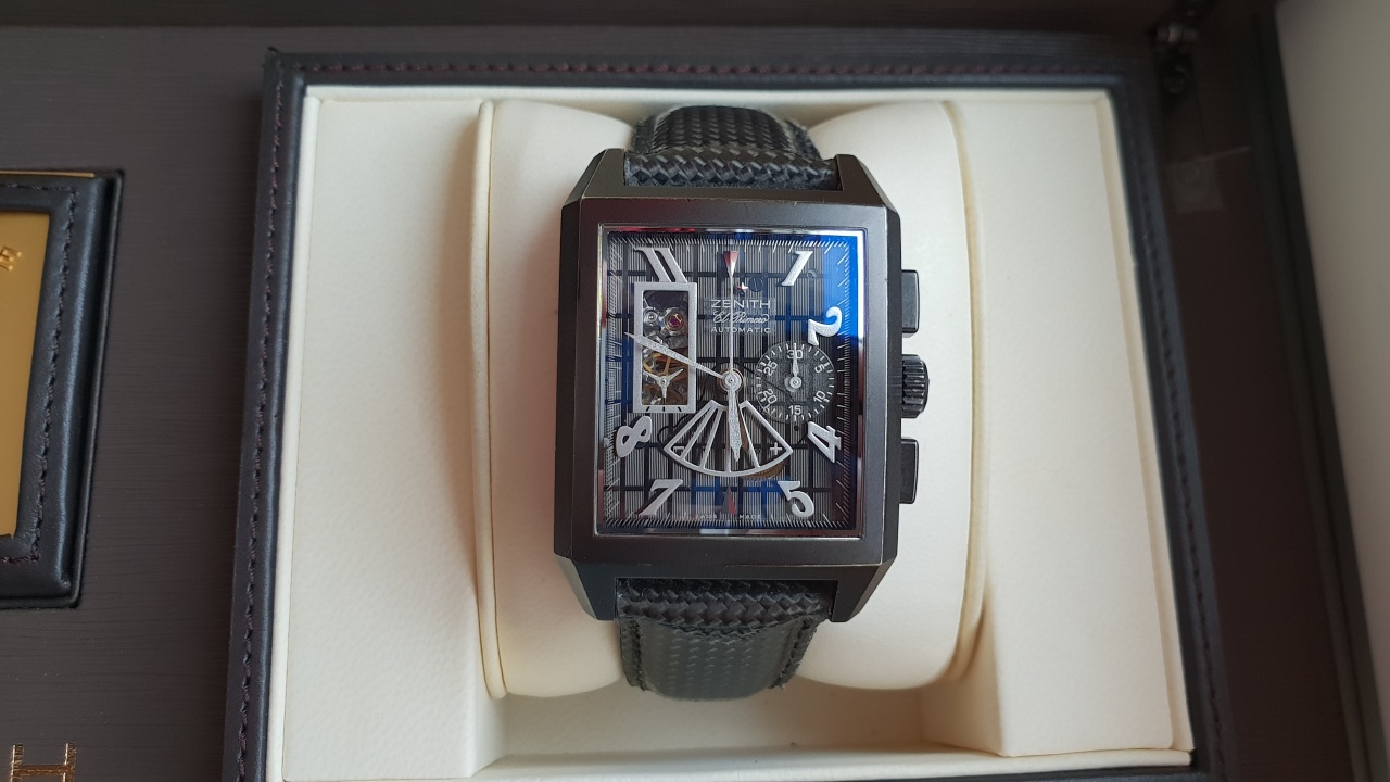 Крупный прямоугольник серии Port Royal . В титане и пвд. С легендарным #elprimero под капотом. Полупрозрачный цифер.