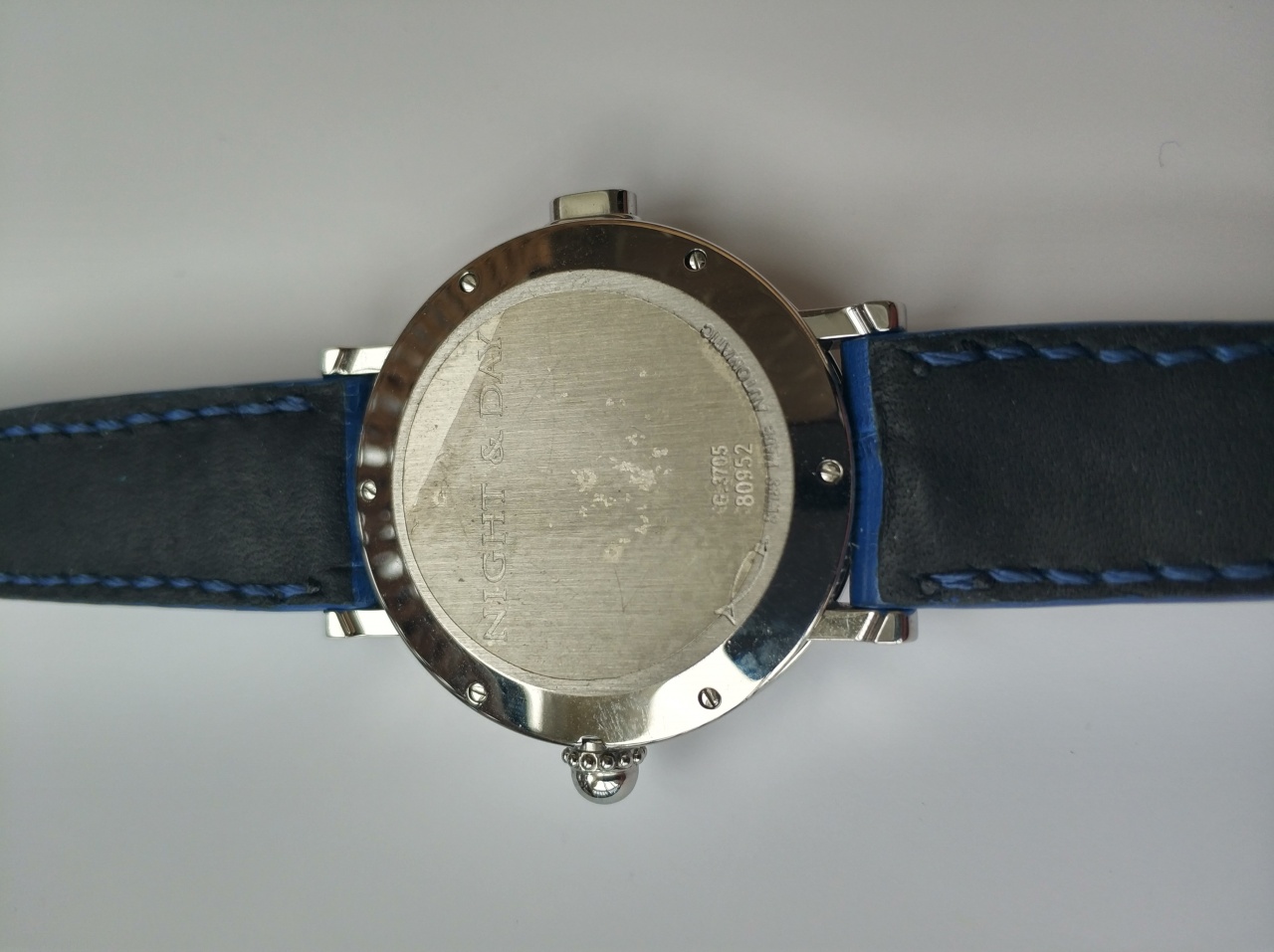Циферблат: синий гильошированный циферблат. Люминисцентные стрелки и метки.